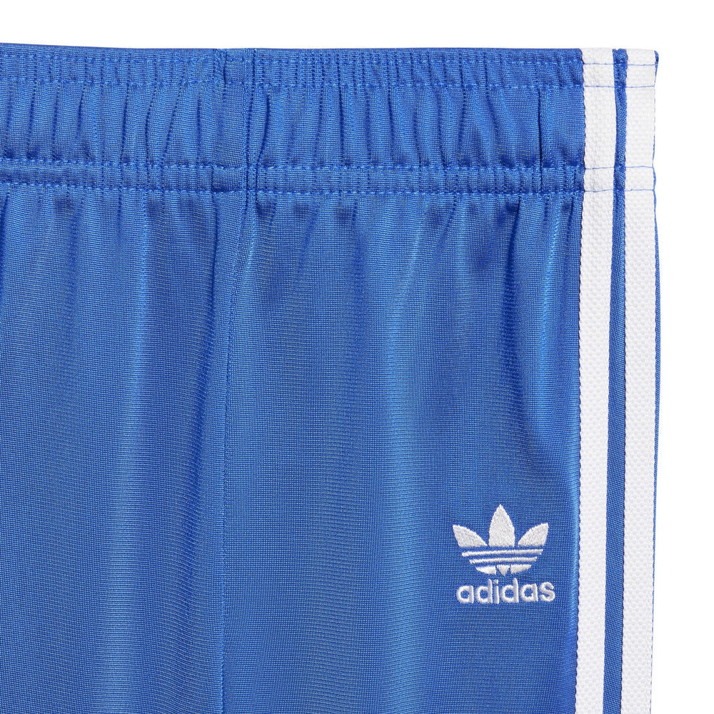 Klä ditt barn i miljövänlig stil med adidas Originals adicolor SST träningsoverall. Den här blå träningsoverallen är tillverkad av 100 % återvunnen polyetentereftalat och har den ikoniska treklöverlogotypen och klassiska 3 ränder som kombinerar en blinkning till arv med modern hållbarhet. Både överdel och underdel har en normal passform för ultimat komfort och hållbarhet, perfekt för lekfulla barn. Den är hållbar och lätt att underhålla och är ett idealiskt val för både vardagslek och stilfull avkoppling.