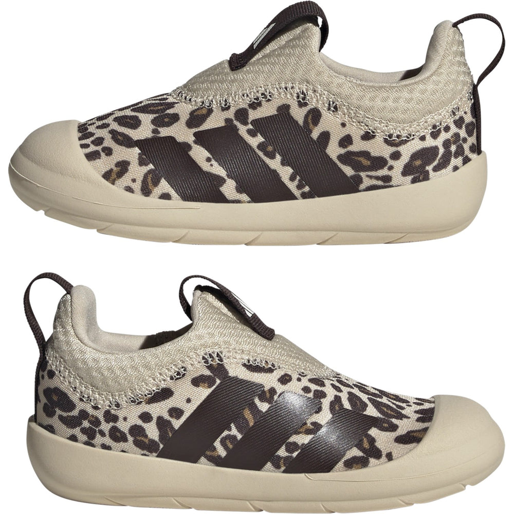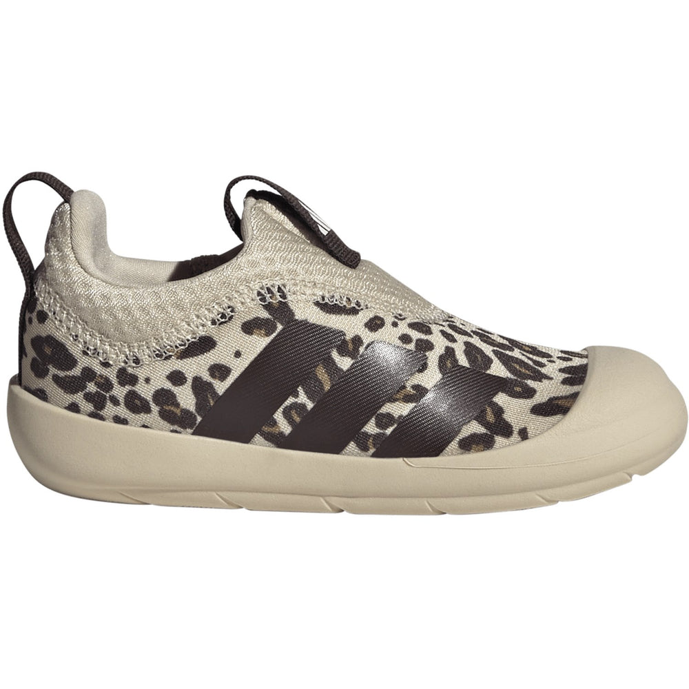 Upplev enkelt och stiligt mode för de minsta med adidas Originals Crystal Linen/Aurora Coffee/Core White Monofit I Sneakers. Skorna är särskilt designade för att förenkla livet för småbarn och deras föräldrar, tack vare sin innovativa symmetriska form som passar både höger och vänster fot. Med en överdel i mjukt textil och utsmyckad med de ikoniska 3-Stripes och en diskret Monofit-logotyp, kombinerar dessa sneakers mode med funktion. Den levande färgsättningen och släta design gör dem till ett fräscht komplement till vilken barnoutfit som helst. Denna modell erbjuder inte bara stil, utan också bekvämlighet och säkerhet för energisk lek. Den flexibla, lätta gummiyttersulan ger stabilitet och bra grepp på olika underlag, vilket är idealiskt för barn i rörelse. Slip-on designen utan snörning underlättar för barnen att själva ta på och av skorna, vilket främjar deras självständighet. Införskaffa ett par adidas Originals Monofit I Sneakers för att ge ditt barn både komfort och självförtroende under dagens äventyr, både inomhus och utomhus. Med dessa skor blir varje steg mot självständighet enklare och roligare!