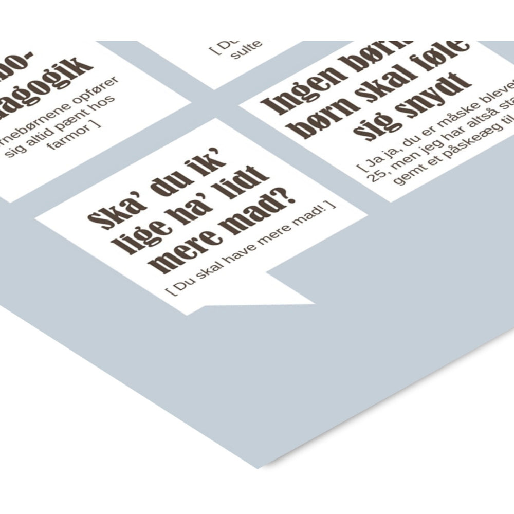 Låt ditt barns rum svepas in i värme med vår charmerande "Dialægt – Farmor" poster. Denna grå affisch inte bara harmoniserar med olika inredningsstilar, utan bidrar även till en trygg och lugnande miljö. Tillverkad i Danmark på hållbart FSC-certifierat papper, stödjer du även den lokala konstnären bakom designen. Affischens storlek är A3 (297 x 420 mm), vilket gör den idealisk för att hänga på väggen eller stå i en stilren ram som säljs separat. En perfekt present till nyblivna föräldrar eller som en kärleksfull gåva till mor- och farföräldrar, denna poster förgyller varje barns eller babyrum och främjar en berikande atmosfär. Material: Papper Mått: A3