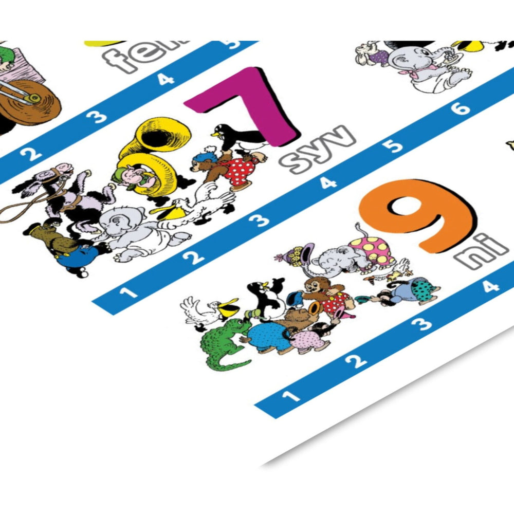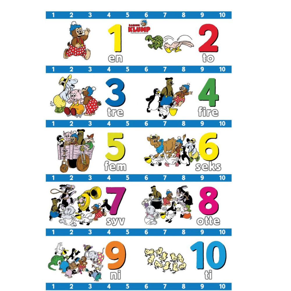 Upptäck affischen "Rasmus Klump – Tal", en charmig och pedagogisk inredningsdetalj för det yngsta rummet. Denna färgglada poster är mer än bara en vacker dekoration; den är designad för att på ett roligt sätt introducera barn till de första siffrorna, vilket stimulerar deras tidiga lärande och nyfikenhet. Dessutom bidrar de bekanta karaktärerna från Rasmus Klump till en trivsam och inbjudande miljö i såväl baby- som barnrum.