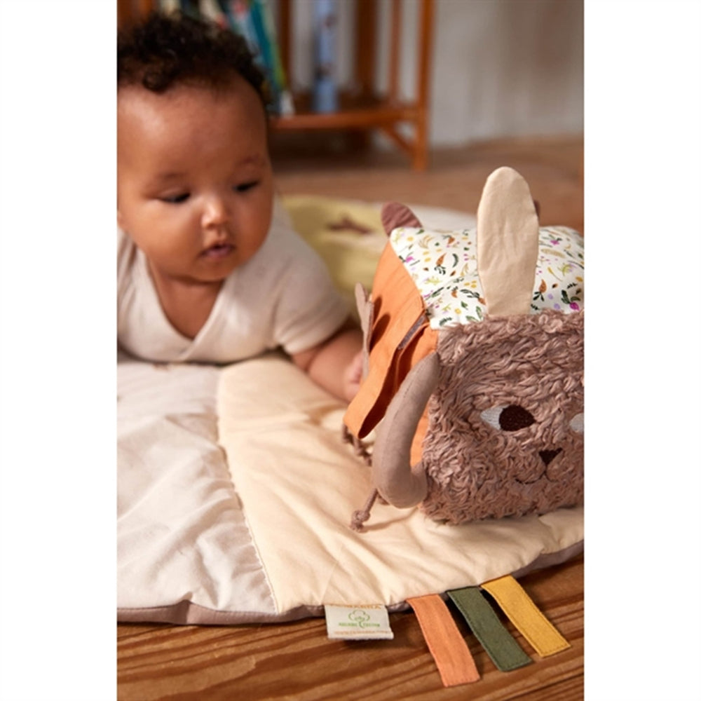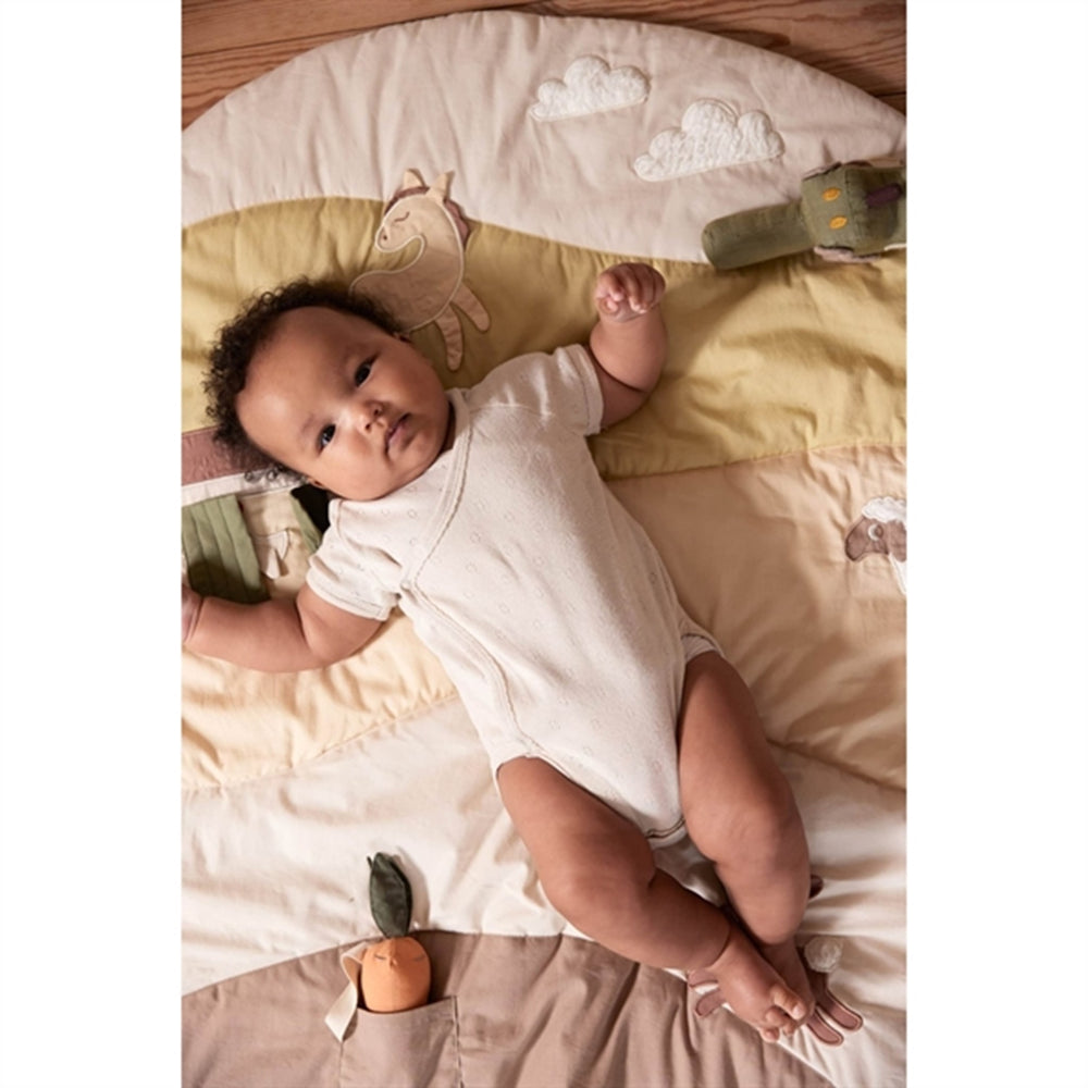 Aktivitetsmattan är tillverkad av mjuk ekologisk bomull och lätt fylld med hållbar återvunnen polyester, vilket garanterar en säker och behaglig miljö för barnet. Denna lättviktiga matta är dessutom enkel att flytta och förvara, vilket gör den till en idealisk följeslagare i alla rum och vid alla tillfällen. Med sina lugna, jordnära färgtoner smälter den dessutom väl in i hemmets inredning. FILIBABBA Aktivitetsfilt är en investering i ditt barns lekfulla och säkra upptäckande.