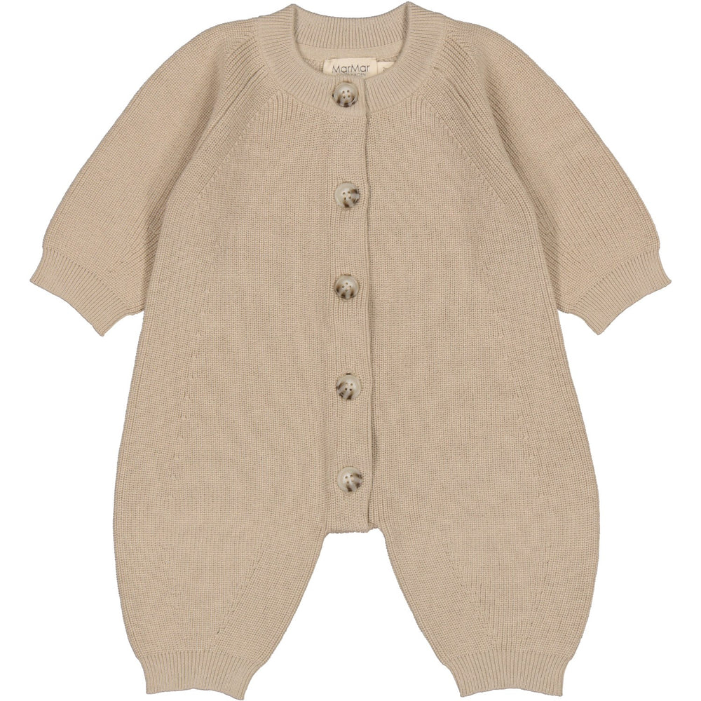 Denna härliga stickade kostym från MarMar är den perfekta blandningen av komfort och stil för ditt barn. Med raglanärm och en praktisk knappstängning framtill är denna one-piece designad i en klassisk 100% bomullskvalitet som säkerställer andningsförmåga och mjukhet mot känslig hud. Den fina stickningen i ett stycke ger dräkten ett tidlöst utseende, vilket gör den idealisk för både lek och vila. Ett måste i varje liten charmörs garderob!
