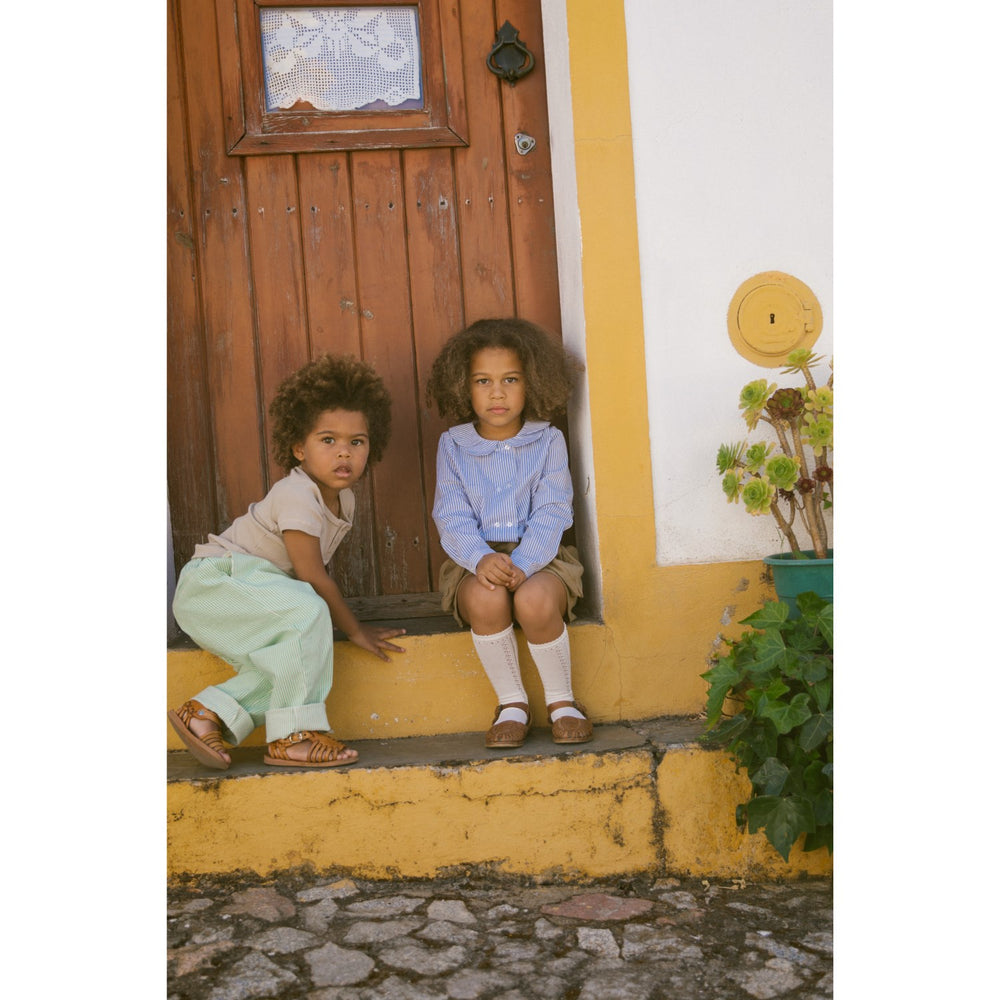 Dessa härliga MarMar Paloma-byxor i 'Soft Denim Cale Green Stripe' är perfekta för din lilla upptäcktsresande! Med en smart randig design och tillverkad av en mjuk denimtwill med stretch garanterar de perfekt komfort och rörelsefrihet hela dagen. Byxorna är utrustade med praktiska fickor och en bekväm resår i midjan, vilket gör dem idealiska för lek och äventyr. En slitstark kvalitet som håller sig vacker även efter många tvättar – och ändå tillräckligt andningsbar för att hålla dem svala och bekväma.