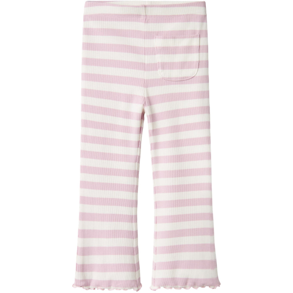 Klä upp ditt barn i stil med Name It Winsome Orchid Taia Slim Bootcut Pants, perfekt för både skola och lek. Dessa byxor är tillverkade i ett mjukt och hållbart material, med ett svalkande foder av ekologisk bomull som säkerställer att ditt barn håller sig bekvämt hela dagen. Den ribbstickade designen presenterar ett tidlöst, vertikalt randigt mönster som lätt kan matchas med andra plagg.