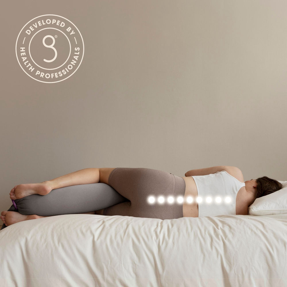 Designad för komfort, sömn och stöd endast för vuxna. Lämna aldrig ditt barn utan uppsikt med graviditetskudden. Spädbarn bör aldrig sova på eller med graviditetskudden på grund av risken för kvävning. Låt inte barn dra upp dragkedjan på kudden, eftersom de inre mikropärlorna kan utgöra en kvävningsrisk.