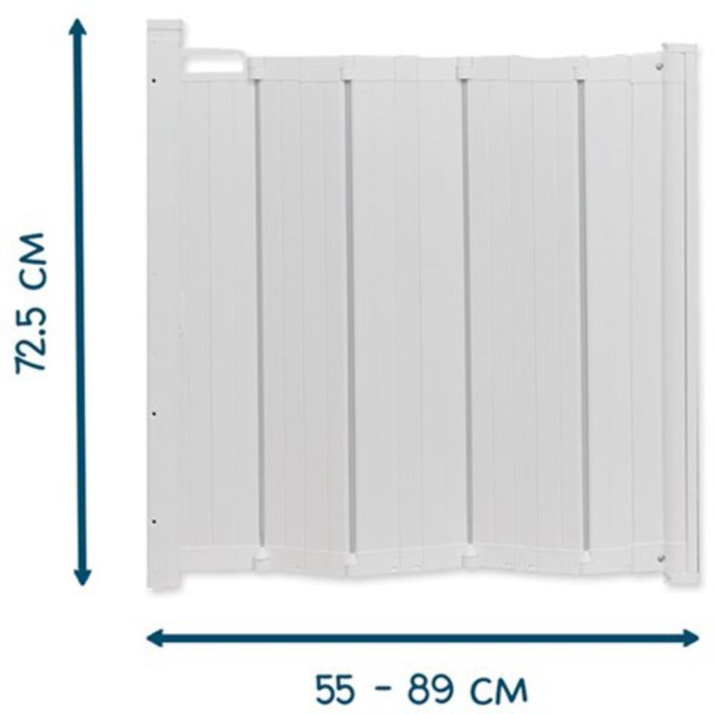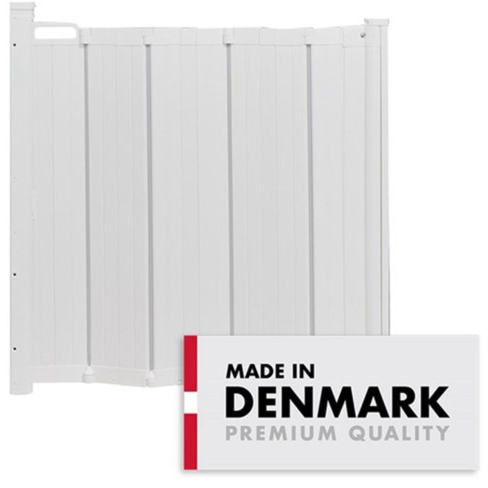 BabyDan Guard Me skiljer sig från mängden med sin automatiska vikmekanism som enkelt fälls tillbaka och skapar en bred passage utan tröskel, vilket gör den idealisk för placering både i trappor och korridorer. Denna flexibilitet säkerställs även genom dess expanderbara design som anpassar sig perfekt till varierande dörrbredder.