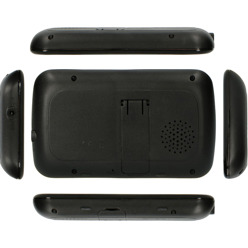 - Överordnad enhet med skärm fungerar med en adapter som ingår och ett batteri som också ingår