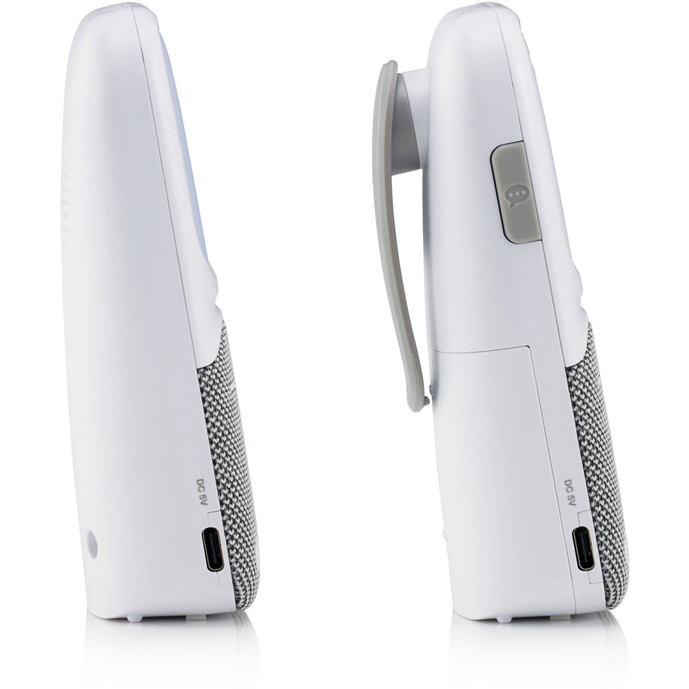 Den moderna tygdesignen gör den inte bara funktionell utan också en snygg detalj i hemmet. Babyenheten har en lugnande nattlampa och är justerbar i mikrofonkänslighet för optimal användarvänlighet.