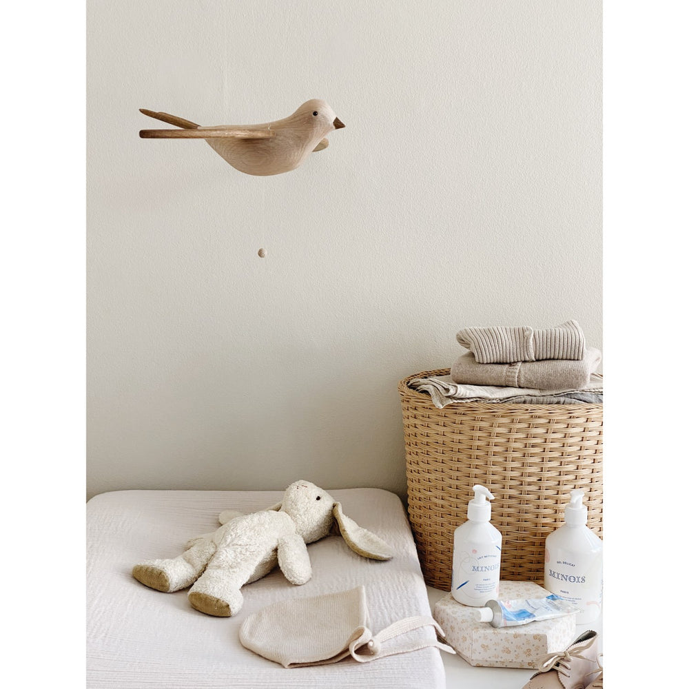 KAS Kopenhagen Oak Flying Koko är lätt att hänga upp och dess kompakta design gör den enkel att förvara. Observera att mobilen enbart är avsedd för dekoration och bör hängas utom räckhåll för barn för att säkerställa säkerheten. Med sin eleganta design och interaktivitet, erbjuder Koko en kombination av nöje och inlärning i barnets egna rum. Material: Ek