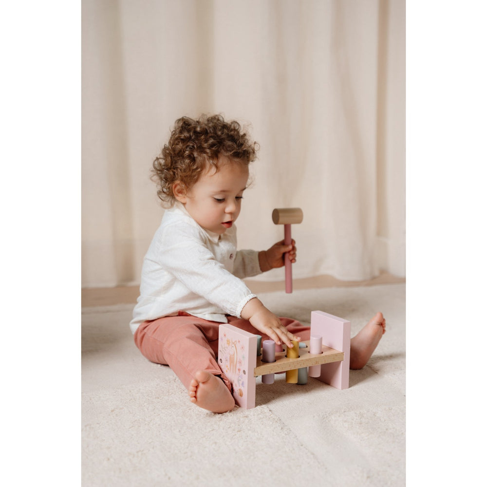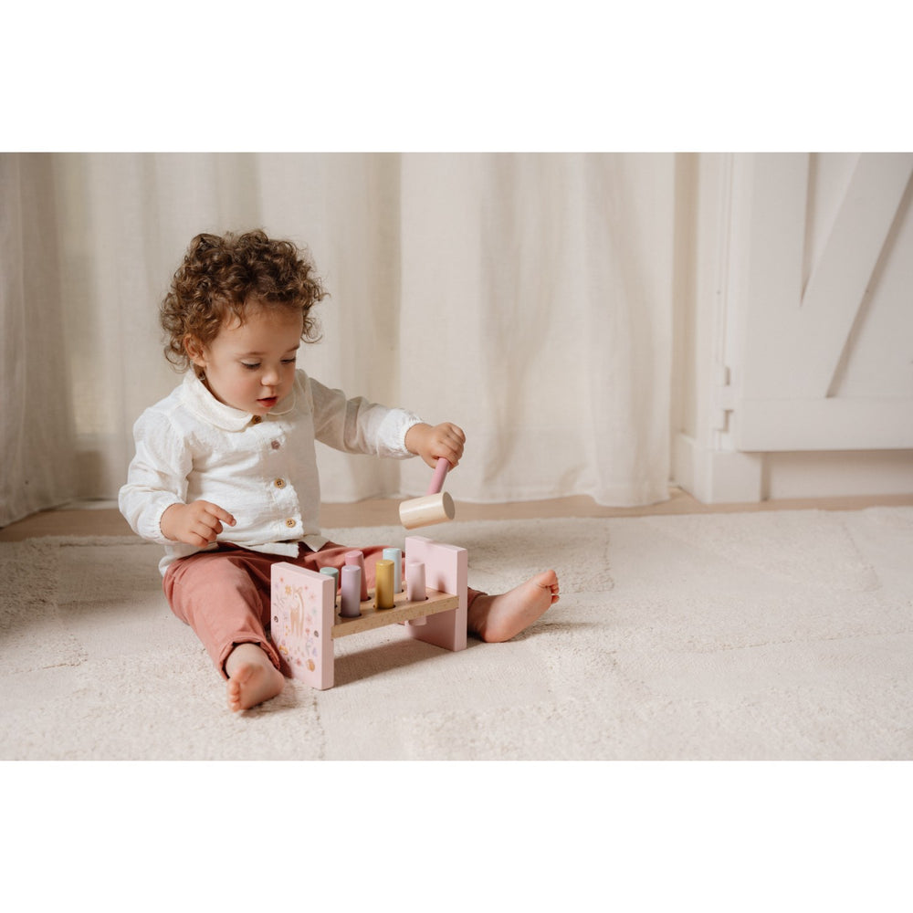 Upptäck Little Dutch Fairy Garden Pink Hammerbræt – en spännande aktivitetsleksak designad för att fängsla och stimulera ditt barns sinnen. Med denna leksak får ditt barn använda en trähammare för att banka ner sex färgglada pinnar i en träbänk, full av charm från Älvträdgården. Efter att alla pinnar är på plats kan bänken enkelt vändas för att börja leken på nytt. Denna robusta leksak är tillverkad av högkvalitativa, barnsäkra material och är idealisk för barn från 12 månader och uppåt. Den främjar inte bara finmotorik utan också öga-hand-koordination och problemlösningsförmåga. Med dess levande färger och interaktiva natur engagerar den barnet i lek som både är underhållande och utbildande. Little Dutch Fairy Garden Pink Hammerbræt är även lätt att förvara och transportera, vilket gör den till en utmärkt leksak för både hemmabruk och utflykter. Rengöring och underhåll är enkelt, vilket säkerställer att leksaken kan bevaras i gott skick över tid. Med denna leksak kan ditt barn utforska, lära och växa genom lek, vilket gör den till en utmärkt investering för barnets tidiga utveckling.