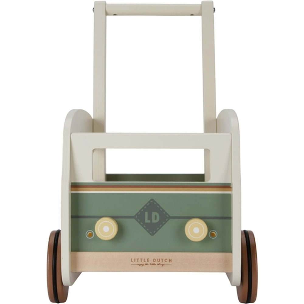 Nu bär det av! Äventyr i vardagsrummet med Vintage Stroller. Steg för steg lär du dig att gå och barnvagnen hjälper dig. Så starta motorn och föreställ dig att du är föraren av den här supercoola skåpbilen. Den vintage barnvagnen i trä är inte bara en hjälpreda för din lilla nybörjarförare. Barnvagnen är också en tidlös design av en vintage surferbil som är perfekt för förvaring av leksaker. Ditt barn kan förvara leksaker för fantasifull lek inomhus eller ta med dem på vandringsäventyr! Perfekt för att utveckla balans, koordination och motorik. Och tack vare gummilisterna behöver du inte oroa dig för ditt golv när ditt barn springer genom rummet.