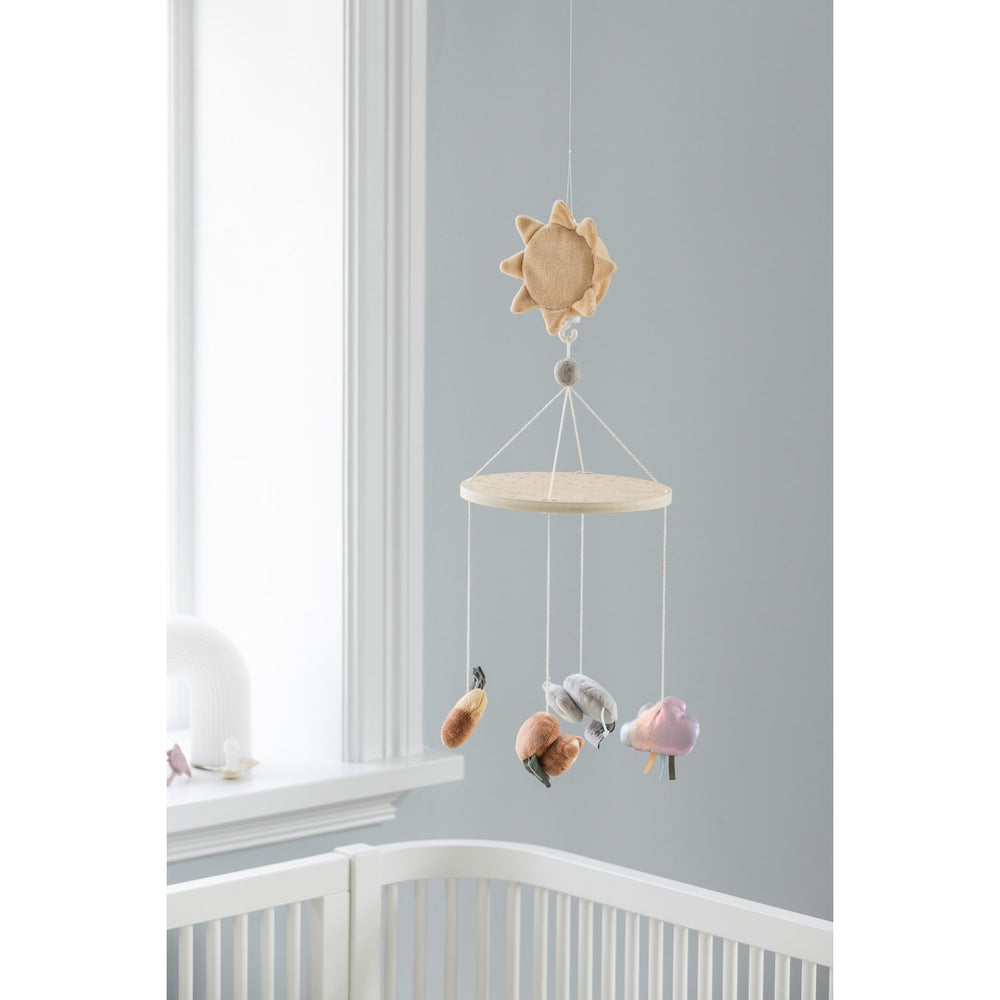 Upplev magin med Sebra Woodland Baby Musikal Spegel Mobil, perfekt utformad för att underhålla och lugna ditt barn samtidigt som det erbjuder en säker och stimulerande upplevelse. Den här charmiga musikmobilen är mekanisk och behöver inga batterier. Genom att enkelt vrida på det solformade vredet högst upp aktiveras en mjuk melodi som spelar medan fyra förtjusande skogsfigurer i trä roterar sakta. I mitten av mobilens hänger en spegel som låter ditt barn upptäcka sin egen spegelbild, vilket bidrar till självkännedom och underhållning.