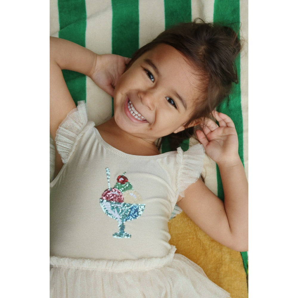 Upptäck den förtrollande Amandine baddräkten från Konges Sløjd, perfekt för små äventyrare! Denna mjuka och snabbtorkande baddräkt är designad i ett skimrande tyg med charmiga tylldetaljer, vilket garanterar stil och komfort under lekfulla dagar vid stranden eller poolen. Med sin lätta passform och behagliga material är den idealisk för barnens rörelsefrihet. CE-märkt för högsta säkerhet och kvalitet, är denna baddräkt det perfekta valet för sommarens soliga dagar.
