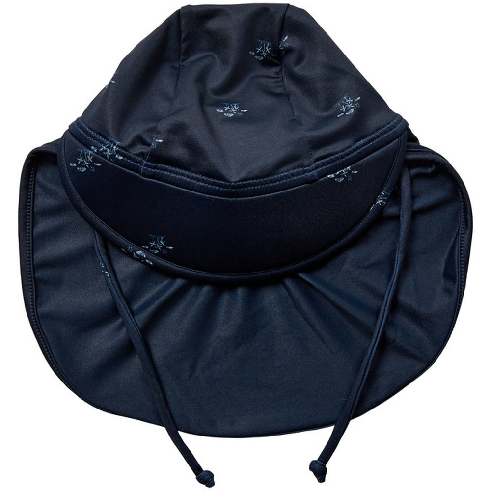 Sofie Schnoor Dark Blue UV Sun Hat är den perfekta solhatten för badleken! Med sitt handflatstryck och praktiska knytband är den här mörkblå solhatten både rolig och funktionell. Mössan är designad med ett flexibelt brätte framtill och ett långt halsbrätte baktill med eldtryck. Tillverkad av 82% återvunnen polyester med fokus på klimat och miljö. Med UPF 50-skydd är ditt barn väl skyddat från solens skadliga strålar. Kom ihåg att följa tvätt- och användningsinstruktionerna för att hålla mössan i toppform!