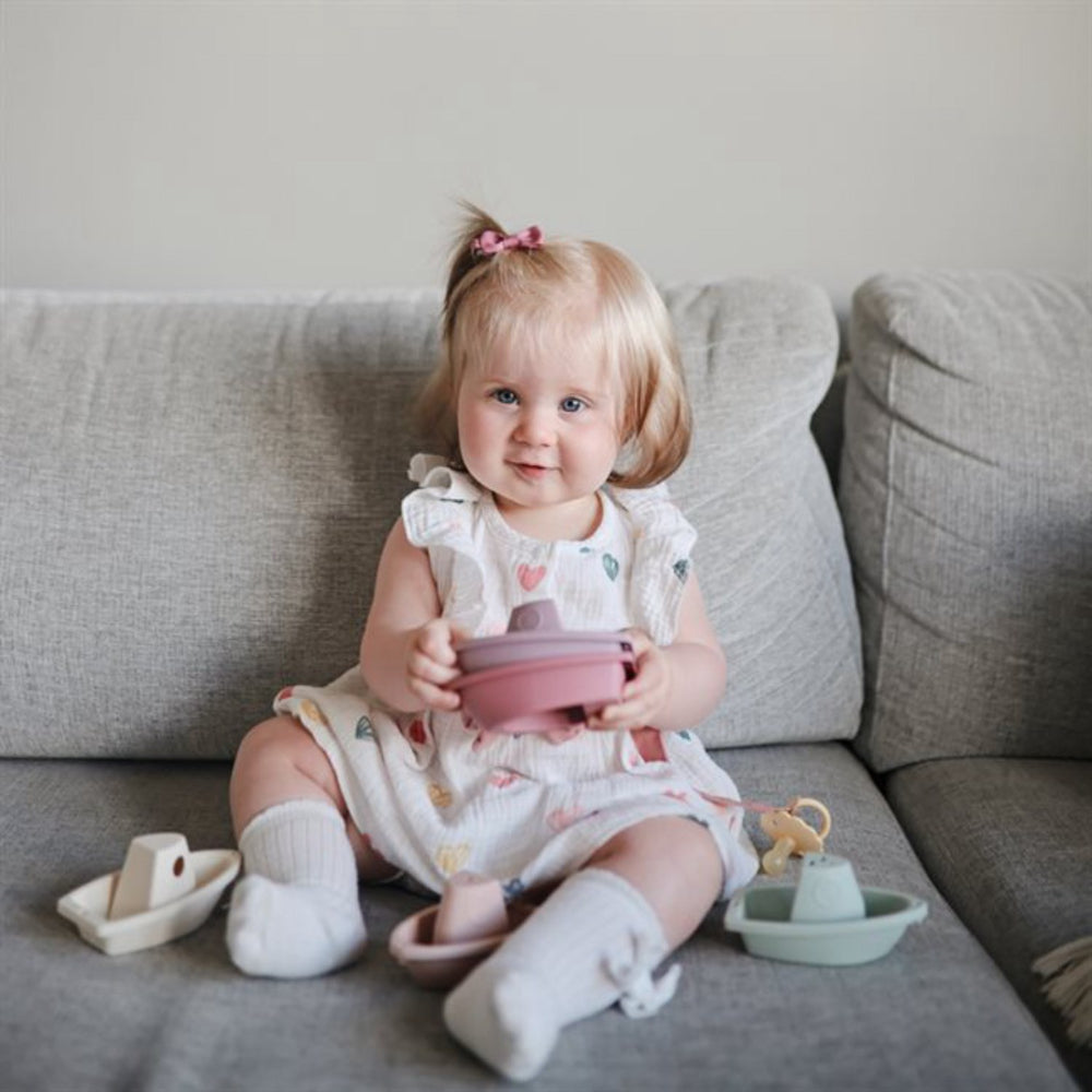 Glid in i badtiden med Mushie Petal Bath Boats – perfekt för den lilla sjöfararen! Dessa charmiga, stapelbara båtleksaker, tillverkade i säker och hållbar PP-plast, erbjuder både nöje och utbildningsmöjligheter med sitt set om 5 färgglada båtar. Designade för barn från 10 månader, uppmuntrar dessa båtar till självständig lek och är idealiska för att utveckla finmotorik och koordinationsförmåga både i och utanför badet. Med sin robusta konstruktion och enkla skötsel – enbart en tvätt med varmt tvålvatten följt av lufttorkning – erbjuder Mushie Bath Boats en praktisk och rolig lekupplevelse för ditt barn. Deras lätthanterliga design och multifunktionella bruk gör dem till en favorit i varje leksamling. Låt ditt barns fantasi skapa ändlösa äventyr med dessa underhållande och stimulerande badleksaker!