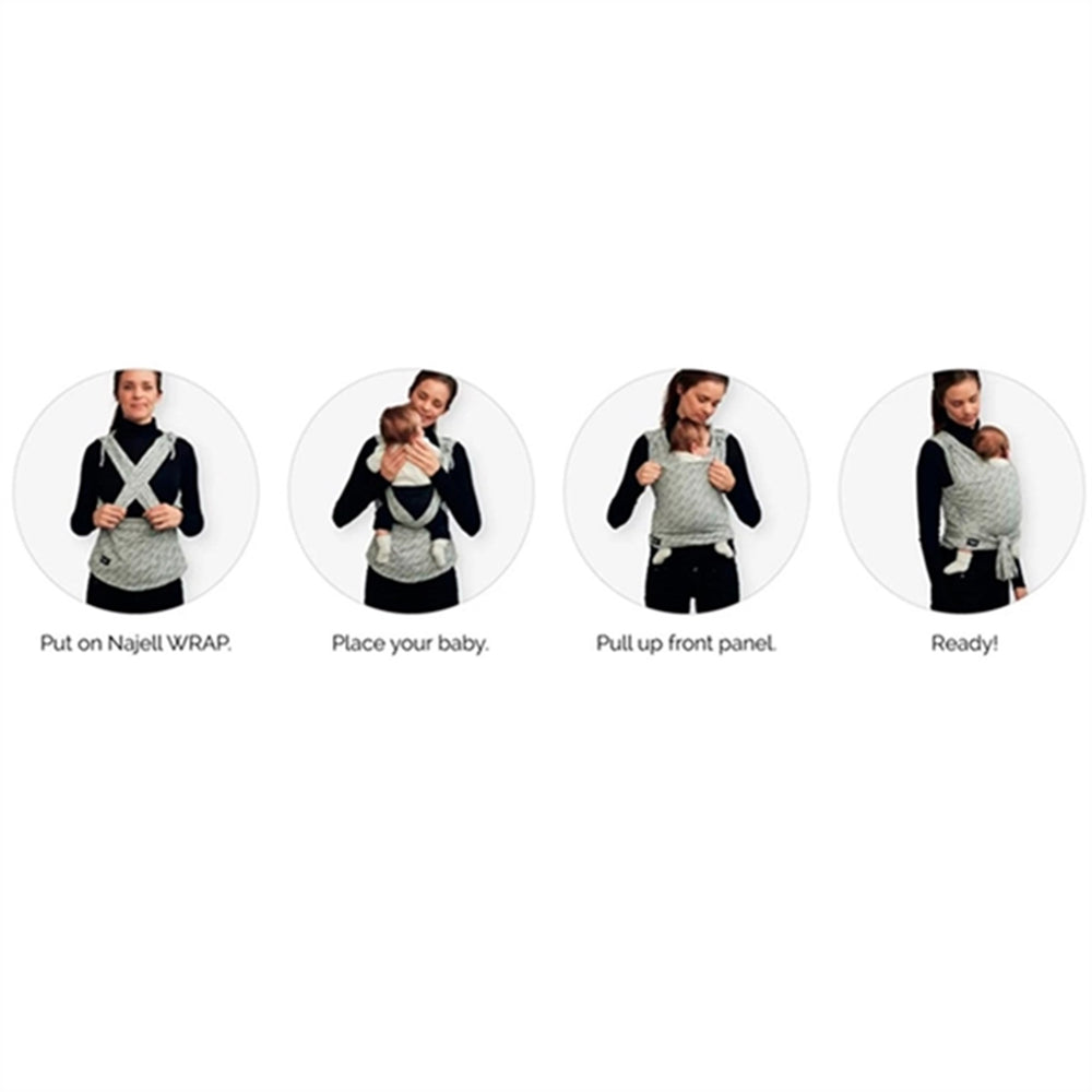Superfin och praktisk bärsjal. Fungerar precis som en bärsele, men är i en härligt mjuk jerseykvalitet. Man trär bara sjalen över huvudet, därefter är det bara att sätta ned babyn i den. Det enda man ska, är att knyta en knut nedtill, så att babyn får stöd. Den är helt säkert, både bekväm för mamma och barn.