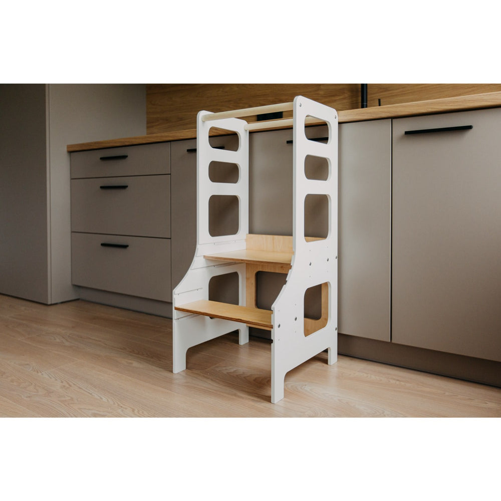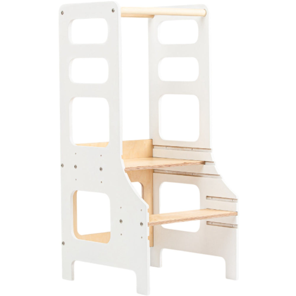Upptäck Duck Woodworks justerbara kökstorn i vitt, perfekt designat för små upptäckare. Detta lärande torn främjar säkerhet och ergonomi samtidigt som det ger barnen chansen att nå köksbänken under övervakning. Tornets justerbara höjd garanterar att det växer med ditt barn, och dess stabila konstruktion erbjuder trygghet. Med sitt stilrena vita utförande kompletterar det smidigt inredningen i vilket kök som helst. Det här kökstornet är inte bara en plats för barnet att stå; det stimulerar även deras utveckling och självständighet genom praktiska läroerfarenheter.