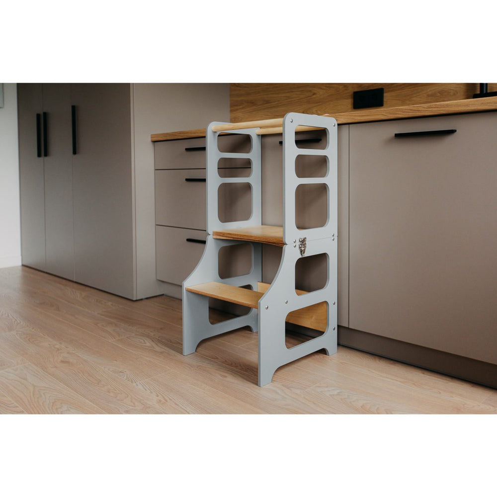 Upptäck vår Duck Woodworks vikbara kökstorn i grått – ett perfekt lärande verktyg för ditt barn. Denna innovativa design är inte bara en hjälp för att nå upp till köksbänken, utan också en trygg plats där ditt barn kan engagera sig i dagliga sysslor och samtidigt stärka sin självständighet och utveckla motoriska färdigheter. Kökstornet som enkelt kan förvandlas till en stol eller ett litet bord, är tillverkat i robust material som garanterar säkerhet och stabilitet under användning. Användbarheten och mångsidigheten gör det till en oumbärlig del av barndomens utvecklingsmiljö, fylld med både lärande och lek. Tornet är designat för att harmonisera med vilken heminredning som helst och levereras med tydliga monteringsinstruktioner för snabb och enkel ihopsättning.