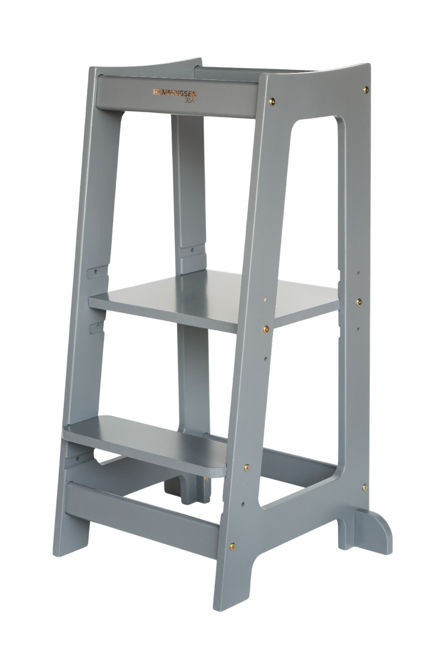 Hemmingsen Kids Martin lärtorn i grått är utformat för att föra barnen närmare köksbordet, matbordet eller diskbänken så att de kan delta i vardagens sysslor. Med en robust design i björkträ och ett skyddande ryggstöd står ditt barn säkert och stadigt när de lär sig och utforskar.