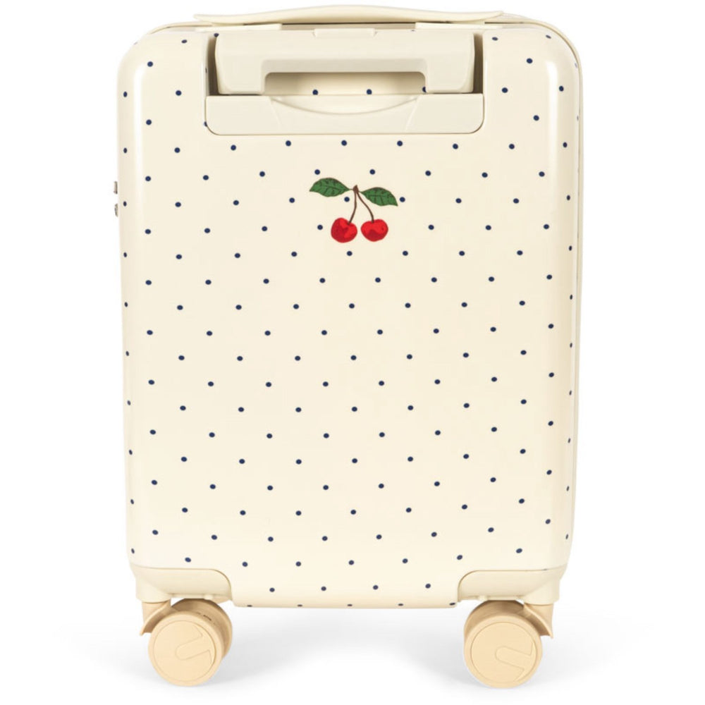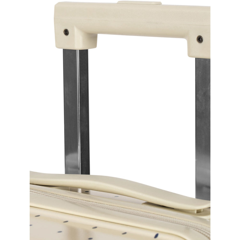 Upplev smidigheten med Konges Sløjd Navy Dot Resväska, perfekt för de små resenärerna. Denna kabinstorleksväska är designad för att göra resandet enklare med sitt lätta och robusta skal samt fyra dubbla hjul som spinner i 360 grader. Ett inbyggt TSA-godkänt lås säkerställer trygghet och skydd för dina ägodelar. Idealisk för såväl flygresor som tågäventyr, den är också enkel att hantera för barn, vilket gör det till ett roligt tillägg i varje resa.
