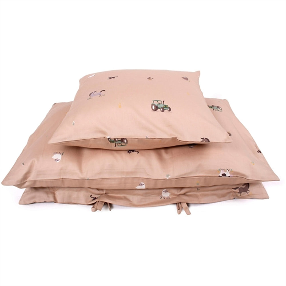 Baby: dynetrekket måler 70x100 cm og putevaren 45x40 cmJunior: dynetrekket måler 100x140 cm og putevaren 45x40 cmSengetøyet vårt er produsert i økologisk GOTS-sertifisert satengvevd bomull, noe som gjør dette settet til babyens ekstra myke favoritt. Settet inkluderer et dynetrekk med knyter og et putevar med konvoluttlukking. Sengetøyet kommer i en matchende veske, som er perfekt for oppbevaring eller som en pen veske på farten. Magic farm inneholder alle gårdens dyr – og mange barnefavoritt: Den kule traktoren. Selv om Magic Farm-trykket er fylt med mange fine illustrasjoner, virker trykket fortsatt rolig og enkelt, da det er rikelig med luft mellom dyrene. Med sin varme og nøytrale grunnfarge passer trykket inn i alle barnerom.