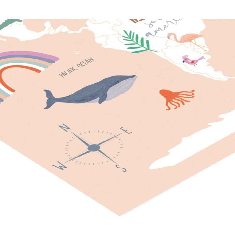 Denna charmiga affisch med titeln "Utforska Världskartan" från Wild Apple är en perfekt inredningsdetalj till barnrummet. Tryckt på miljövänligt FSC-certifierat papper i Danmark, den här vackra kartan i milda toner är inte bara säker utan även estetiskt tilltalande och erbjuder en underbar visuell upplevelse för ditt barn. Den stimulerar inlärning och upptäckarglädje, vilket gör den idealisk för små utforskare som vill lära sig om världen omkring sig.