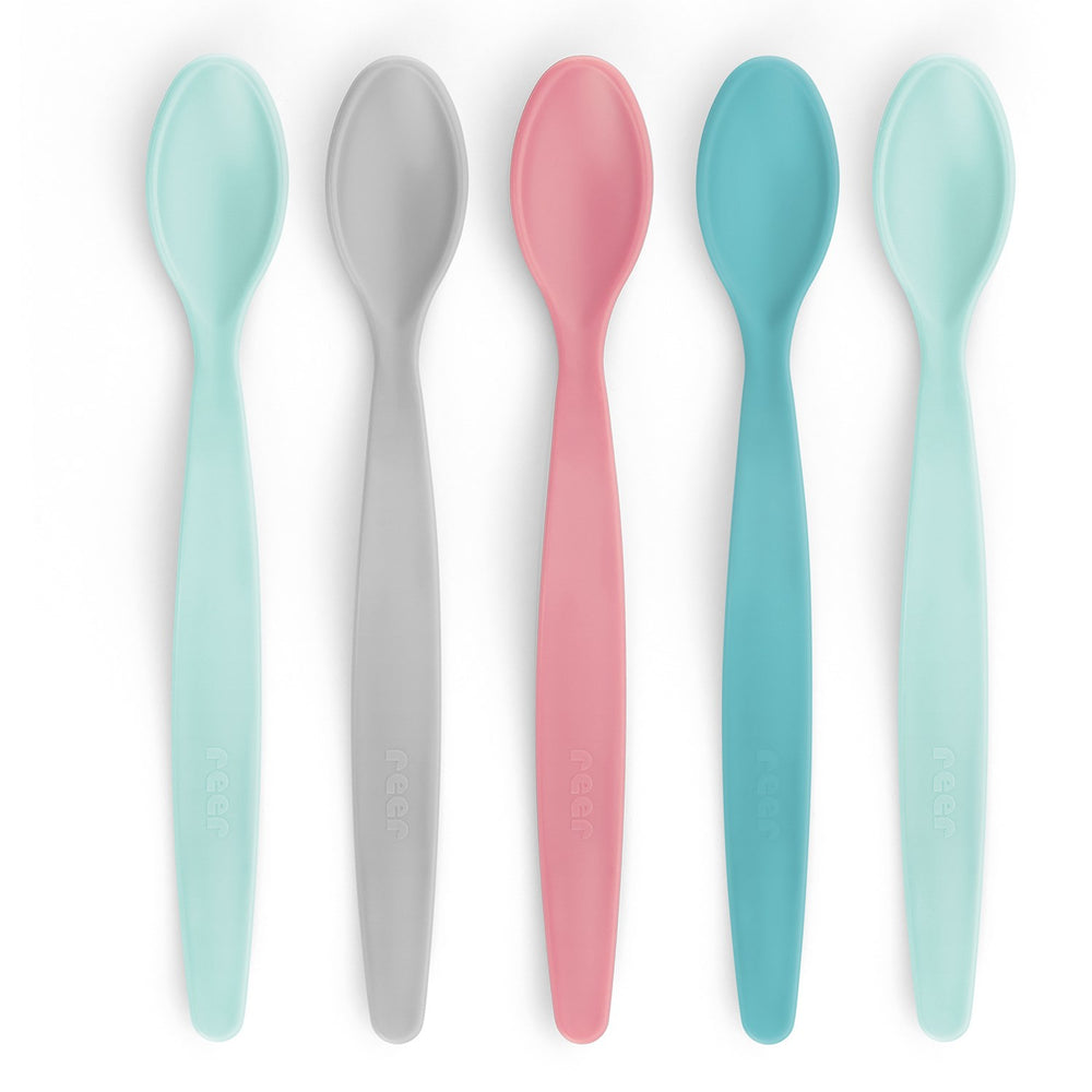 Upptäck REER Multi Spiseskeer, en perfekt kompanjon för ditt barns första grötmåltider. Denna specialdesignade sked har ett smalt och djupt huvud som är anpassat för små munnar, vilket gör det lätt för ditt barn att ta emot maten bekvämt. Tillverkad i BPA-fri plast försäkrar vi om en säker matningsupplevelse. Det extra långa handtaget gör dessutom att du enkelt kan nå ner i djupare koppar, vilket minimerar kladd. Setet innehåller fem skedar i olika färger, vilket stimulerar både syn och så småningom även färgigenkänning. Praktiska att använda, dessa skedar kan diskas i maskin vilket underlättar för dig. Idealiska för barn över 3 månader och ett utmärkt hjälpmedel för att göra måltiderna roliga och bekymmersfria!
