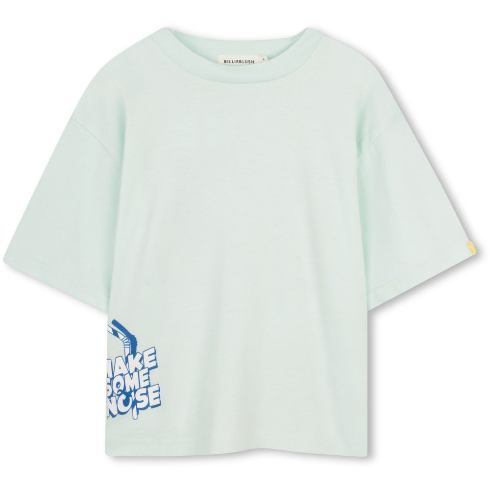 Gläd ditt barn med en charmig Billieblush T-shirt i havsgrönt! Denna kortärmade jersey-t-shirt har en bekväm lös passform och är prydd med lekfulla illustrationer både fram och bak. Ribbad halsringning förstärker komforten, vilket gör den idealisk för vardagligt bruk. Lätt att sköta om; tvättas enkelt i maskin.