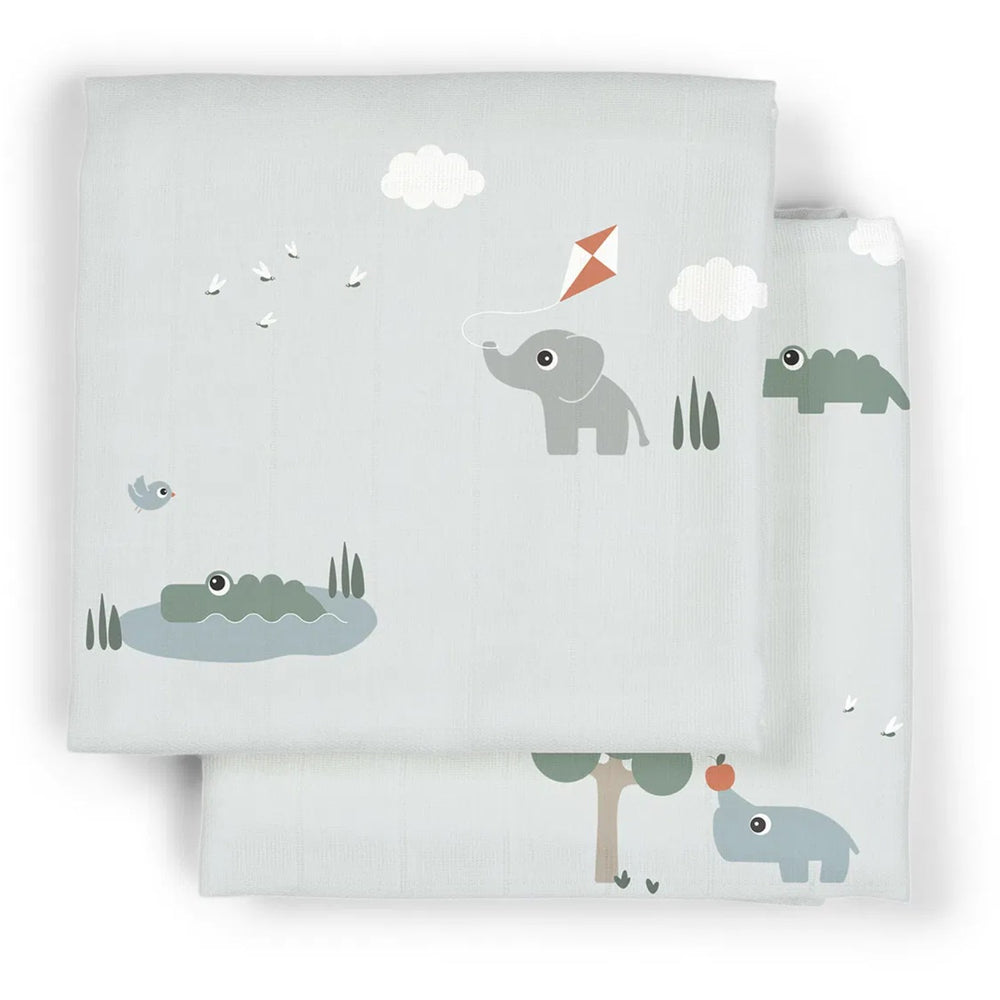 Vår DonebyDeer Blå Muslinfilt i två-pack är perfekt anpassade för barns känsliga hud. De är tillverkade av högkvalitativ muslin-bomull, vilket garanterar både mjukhet och slitstyrka. Certifierade för barnsäkerhet, dessa filtar är lätta att använda, tvätta och förvara. Den mångsidiga designen stimulerar barnets sinne med sina lekfulla mönster och färger, vilket gör dem till en perfekt lekplats för varje tillfälle.