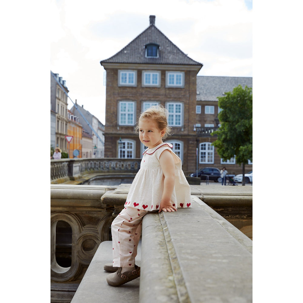Upplev värmen och mjukheten från COPENHAGEN COLORS Dusty Rose W. Berry Hearts Twill Heart Byxor. Dessa byxor i 100% ekologisk bomull är både hållbara och hudvänliga, vilket gör dem till ett utmärkt val för ditt barns garderob. Den justerbara midjan och den normala passformen säkerställer en bekväm användning hela dagen, medan det detaljrika heltäckande broderihjärtmönstret i livliga färger bidrar till en charmig och söt stil. Perfekt för lek och vardagligt bruk, de här byxorna kombinerar funktionalitet med en miljömedveten design, vilket är verifierat med GOTS-certifiering.