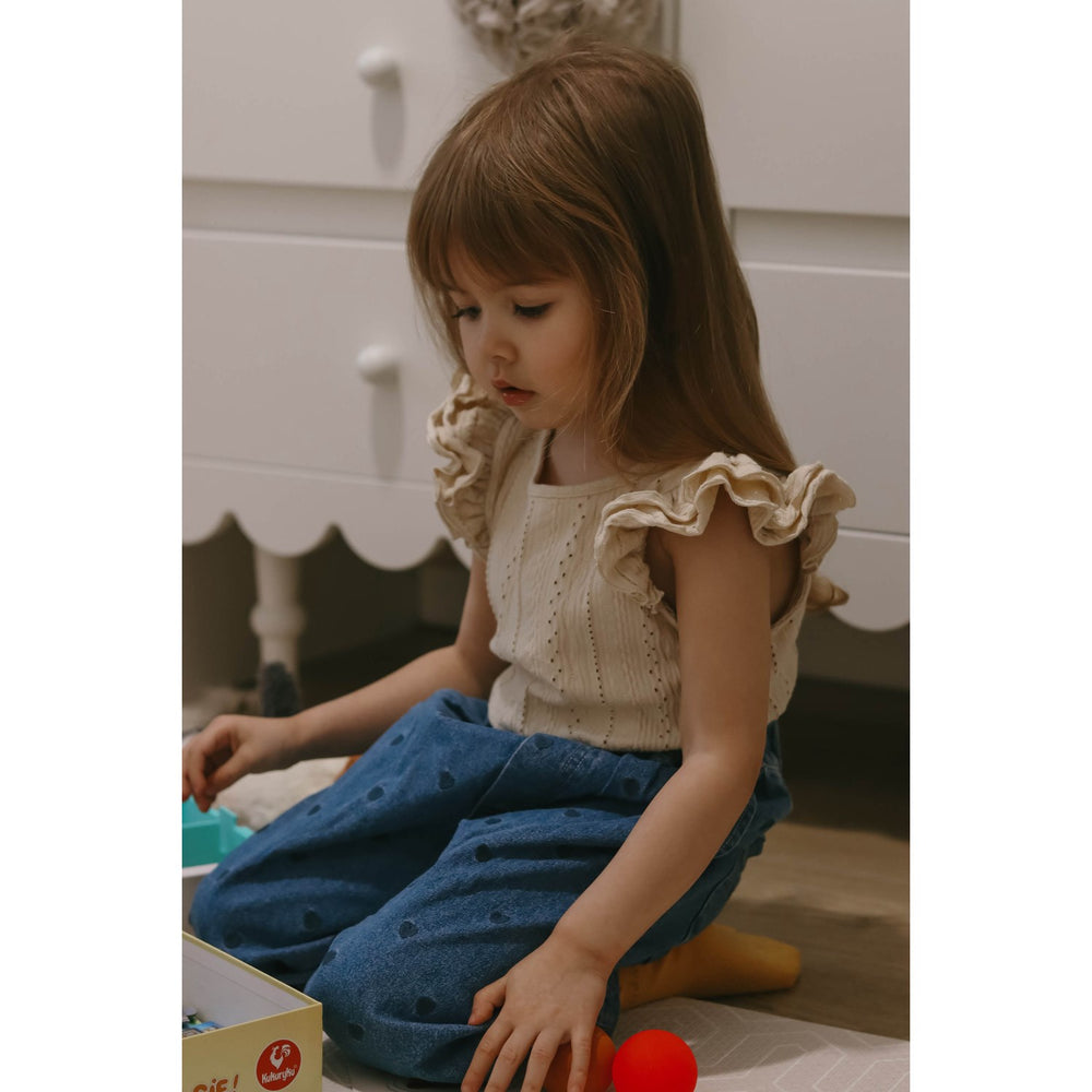 Upptäck en värld av komfort och stil med våra Fliink Light Denim Blue Donna Denim Byxor, perfekta för ditt barns äventyr. Dessa långa jeansbyxor i 100% bomull är inte bara hudvänliga men även otroligt mjuka att bära. Prydda med charmiga broderade hjärtan, erbjuder de en perfekt kombination av mode och funktionalitet. Med en praktisk resår i midjan och rymliga fickor i sidsömmarna gör de sig idealiska för att förvara små skatter som hittas under dagens lekar. Byxorna är designade för att ge fri rörelse och komfort, vilket gör dem ypperliga för lek såväl som avkoppling. Skötselinstruktionerna är enkla med maskintvätt vid 30°C på skonsam cykel. Torktumla dem inte utan lägg dem platt för torkning för att bibehålla den fina kvaliteten. Gi ditt barn glädje med dessa stilfulla och hållbara jeans som kombinerar praktiska egenskaper med en lekfull design.