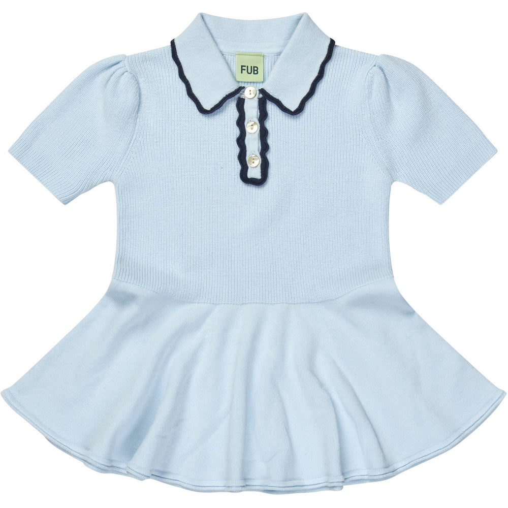 Upplev komfort och stil med vår FUB Ljusblå Peplum Skjorta, perfekt för ditt barns vardagsäventyr. Denna skjorta är tillverkad av 100% certifierad ekologisk bomull, vilket garanterar ett miljövänligt val och mjukhet mot barnets hud. Designen kännetecknas av charmiga, korta puffärmar och en skjortkrage med elegant spetskant i kontrastfärg. För extra stil finns en förtjusande peplumkjol som skapar en lekfull och modern silhuett. Njut av praktiska detaljer som pärlskalsknappar framtill som förenklar på- och avklädning. Den raka, normala passformen, kombinerat med den mjuka resåren i överdelen och den smidiga jersey i kjolen, erbjuder utmärkt rörelsefrihet och bekvämlighet. Är tillgänglig i en serie storlekar, inklusive större storlekar till ett justerat pris. Barnet kan leka, röra sig fritt och känna sig bekvämt hela dagen i denna hållbara och lättvårdade skjorta. Ett idealiskt val för både vardag och festliga tillfällen som förenar funktion med en unik stil.