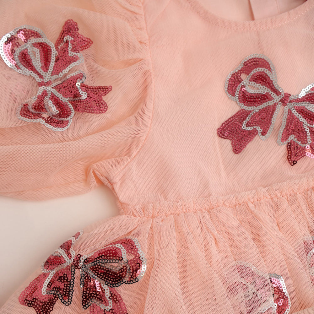 Klä din lilla stjärna i Konges Sløjd Bella Rosett Yvonne Sleeve Klänning för en förtrollande stil. Denna klänning kombinerar voluminös tyll och korta puffärmar med ett elegant midjeband. Lysande paljettbroderier adderar en touch av glamour. Tillverkad i mjuk polyester med ett behagligt bomullsfoder, garanterar den både komfort och hållbarhet. Ett perfekt val för festliga tillfällen som förenar skönhet med bekvämlighet.