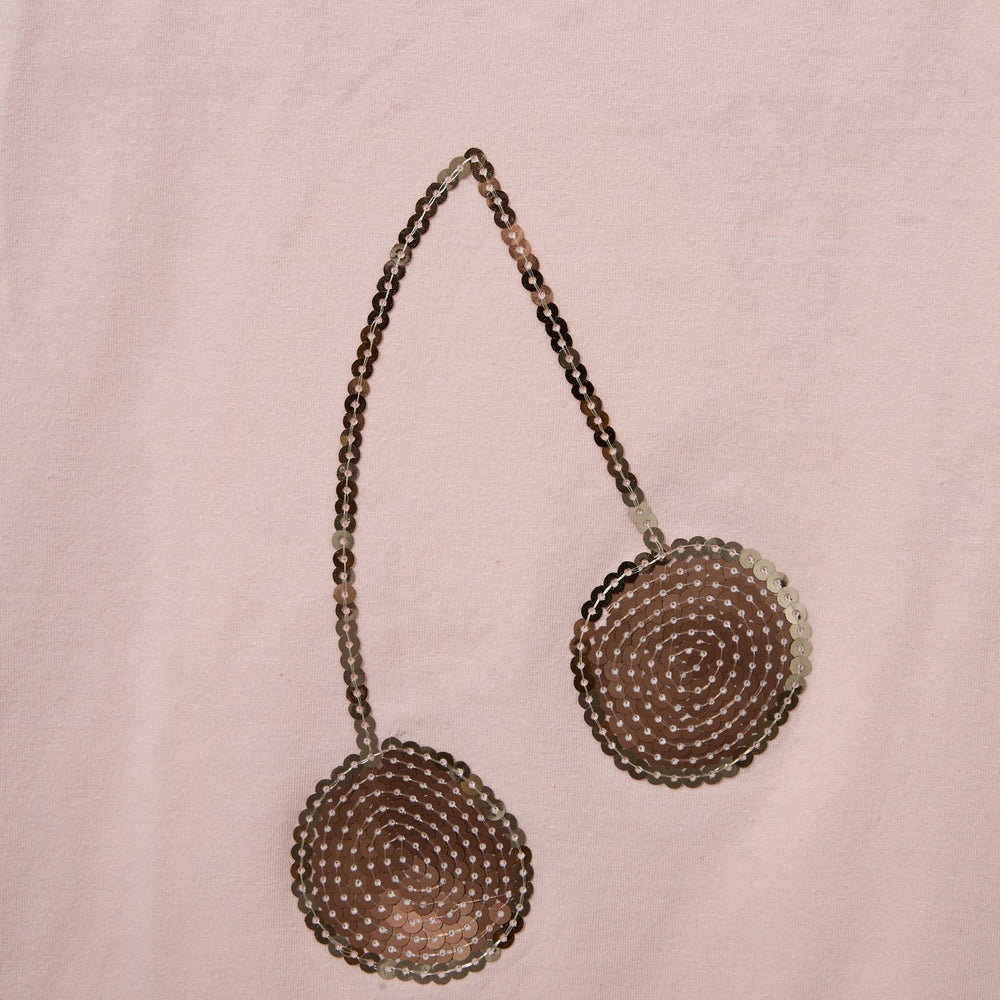 Gör vardagen mer färgglad med den här charmiga babyrosa t-shirten från Sofie Schnoor. Det söta körsbärspaljetttrycket på framsidan ger en rolig och glittrande touch, medan den mjuka bomullskompositionen säkerställer att din lilla stjärna kan leka och utforska bekvämt. Den här t-shirten med rund hals och korta ärmar är perfekt för allt från lekplatsen till barnens födelsedagskalas.