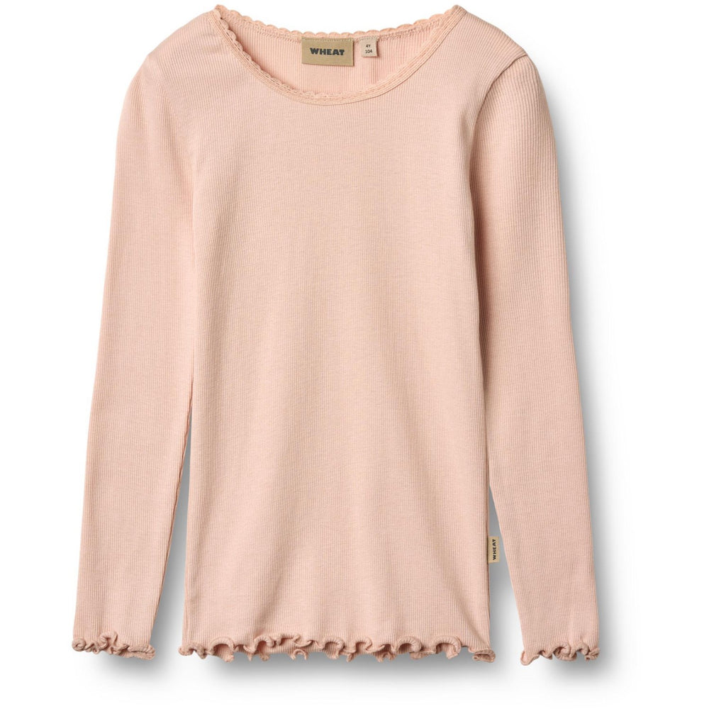 Designen kännetecknas av dess eleganta spetsdetaljer vid halsringningen och överlockade kanter vid ärmslut och nederkant, som ger en fin finish och extra detaljrikedom. Blusens räfflade struktur tillför inte bara en unik estetik utan också en behaglig passform för barnets aktiva liv. Färgerna och de handritade mönstren, skapade av Wheats egna designteam, ger plagg en lekfull och stilfull touch.
