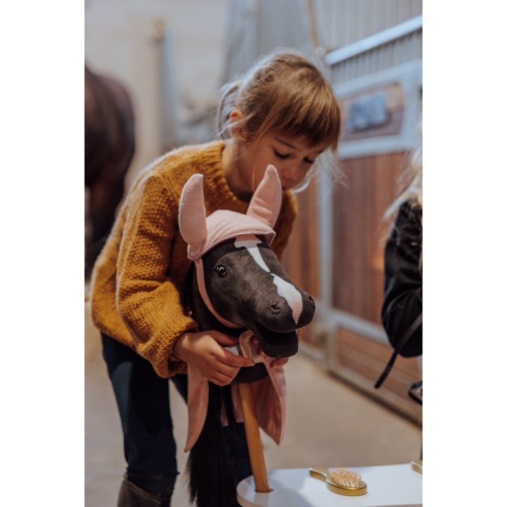 Välkommen till en värld av lekfull elegans med vår rosafärgade käpphäst-matta och hatt från by Astrup. Dessa tillbehör, tillverkade i mjukt, högkvalitativt sammetstyg, är både vackra och praktiska för de små ryttarna och deras träkamrater.