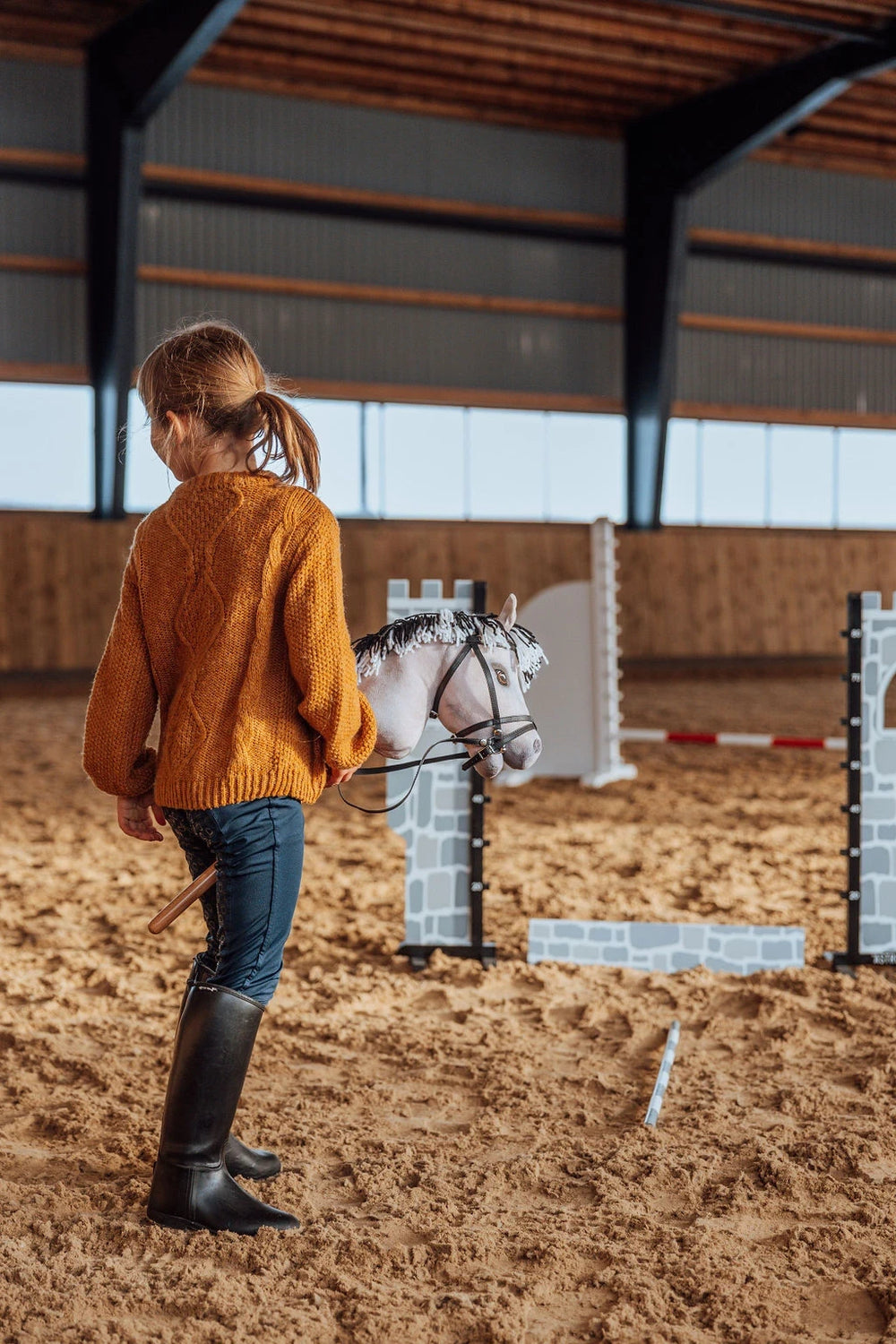 Upptäck Luna, den käpphäst som fångar hjärtan med sitt charmiga och realistiska utseende. Luna är inspirerad av en klassisk nordisk hästras, fulländad med en distinkt, upprätt man i en härlig blandning av svart och sandfärgat garn samt en iögonfallande vit blasa som sträcker sig över huvudet. Denna detaljrikedom ger en otroligt verklighetstrogen känsla och Luna står redo att bli den perfekta lekkamraten. Säkerheten är också i fokus med Lunas robusta konstruktion och giftfria material, för att säkerställa att leken alltid är trygg. Luna är inte bara ett roligt tillskott i leksamlingen, utan också ett pedagogiskt verktyg som stimulerar barnets fantasi och sociala interaktion. I komplement till den visuella charm, Luna kommer med ett nytt och förbättrat tränsel, en krämfärgad saddeldyna och en matchande hatt som bidrar till många kreativa lekstunder. Och för dagar med sämre väder ingår en marinblå regnmatta för att hålla Luna fin och torr. Med sin lätta och hållbara design är Luna enkel att bära med sig och förvara, vilket gör den till en idealisk följeslagare både inomhus och utomhus. Luna tillhandahåller oändliga möjligheter till äventyr, från mysiga stunder i stallet till upptäcktsfärder i skogen, vilket gör att hon snabbt kommer att bli en älskad del av varje barns lekvärld.