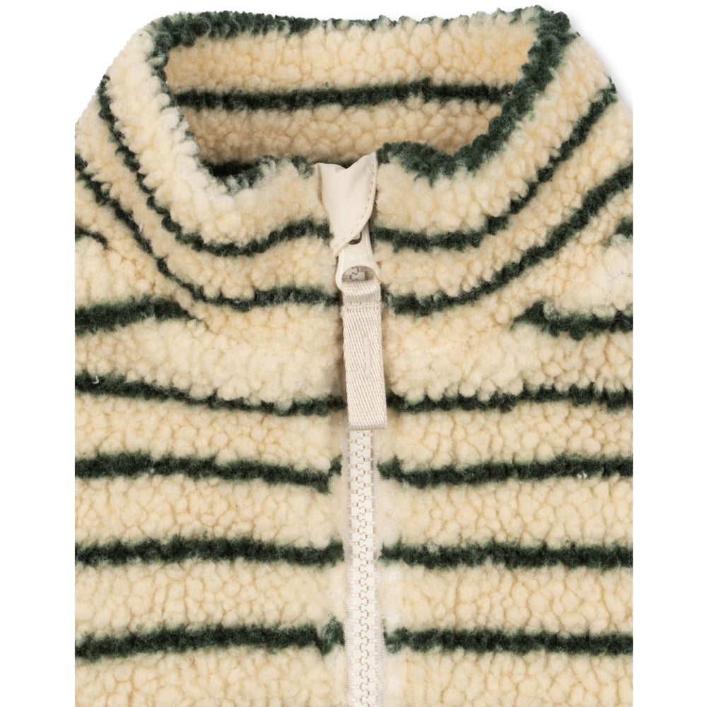 Upptäck värmen och stilen med Konges Sløjd Erba Stripe RHW X KS Jacka i Grs för barn! Denna jacka är tillverkad i varm fleece med lång lugg och mjukt invändigt fleecefoder, perfekt för kyliga dagar. Den höga kragen och de elastiska manschetterna ger extra skydd mot kylan, medan den hela dragkedjan gör den lätt att ta på och av. Det stilfulla randiga mönstret och de bekväma passformerna gör denna jacka till ett utmärkt val för alla barns utomhusaktiviteter.