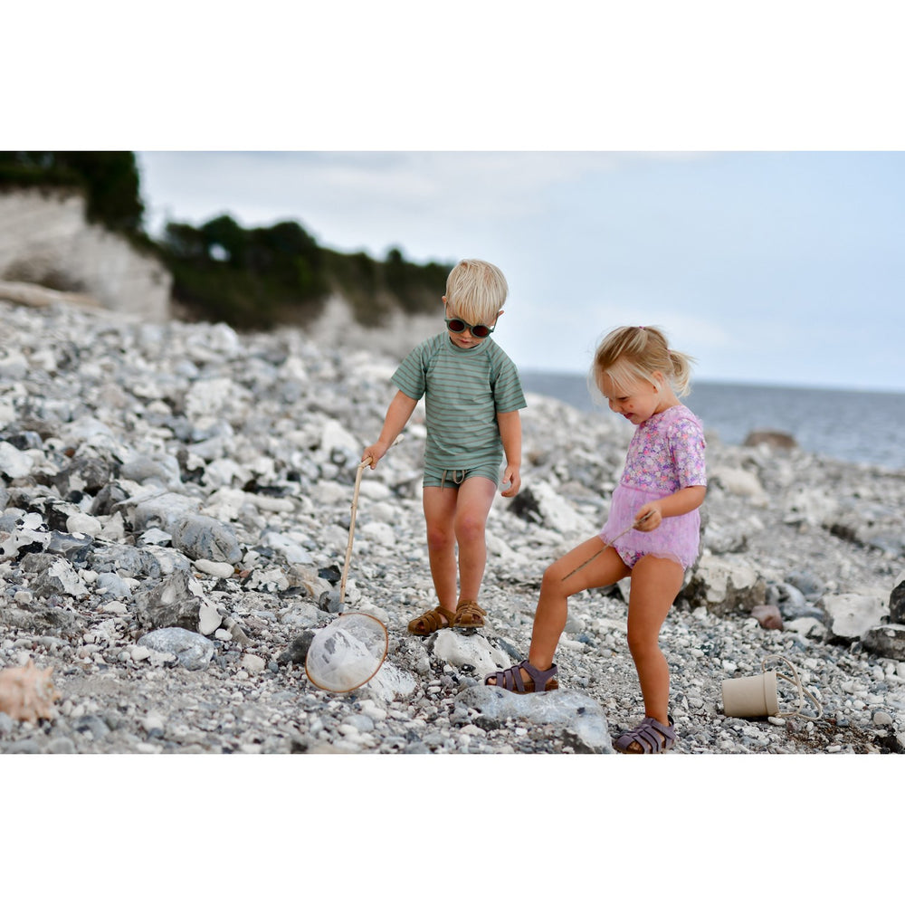 Dyk in i kul med Mikk-Line Green Bay AOP UV-skjorta! Den här badtröjan är tillverkad av återvunnen polyester och certifierad enligt OEKO-TEX® Standard 100 och erbjuder både stil och miljövänlighet. Dess UV 50-skydd skyddar ung hud från skadliga strålar, medan det heltäckande trycket ger ett stänk av stil till varje simsession. Den är designad för en åtsittande och säker passform och är perfekt för aktiva pojkar som älskar att se bra ut när de leker i solen. Tröjan kommer i en mängd olika livfulla mönster, vilket gör att ditt barn alltid sticker ut. Kom ihåg att skölja den i rent vatten efter varje användning för att hålla den i perfekt skick. Den är idealisk för stranddagar och poolfester och kombinerar utmärkt bärbarhet och enkel skötsel.