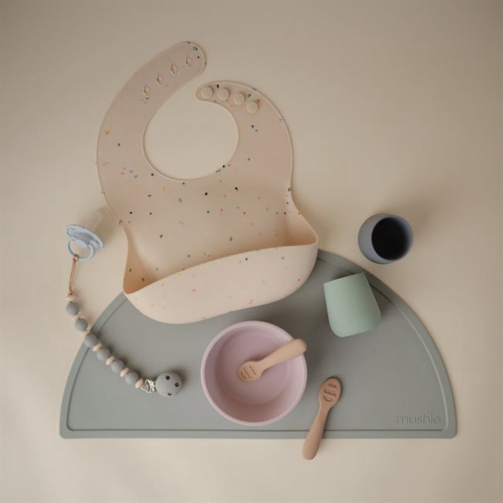 Upptäck Mushie Silicone Starter Cup i lugnande Cambridge Blue, perfekt för små händer som vill ta steget från flaskan. Denna innovativa startkopp är både praktisk och säker för ditt barn, med en design som främjar självständighet vid dryckesstunder.