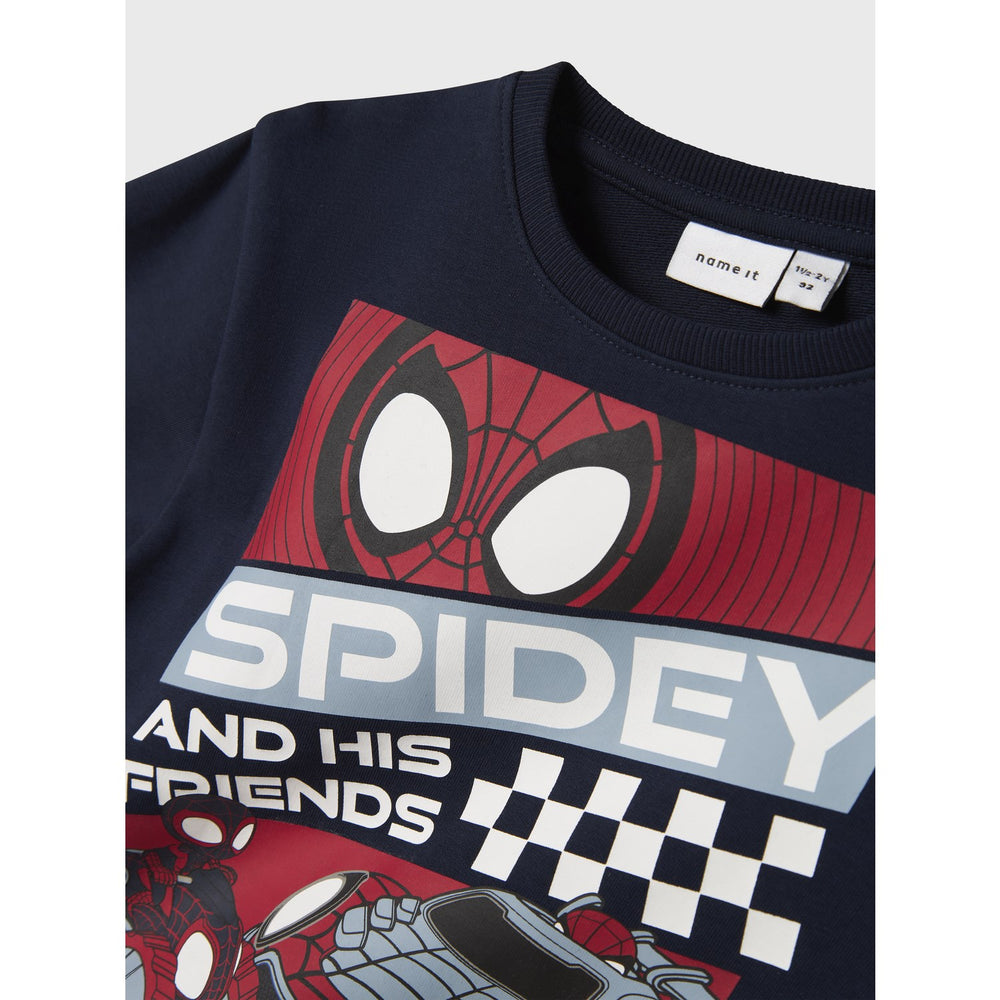Uppdatera din lilla hjältes garderob med Name It Navy Blazer Nmmjo Spider Nreg Sweat Unb Mar sweatshirt. Tillverkad av mjukt, oborstat svetttyg ger denna tröja hög komfort med en slät utsida och behagliga öglor på insidan. Dessutom pryds den av ett iögonfallande gummitryck med Spider-Man-motiv, vilket ger en lekfull och stilfull touch som säkerligen kommer att uppskattas. Tröjan har en klassisk rund hals, långa ärmar och ribbade manschetter som tillsammans säkerställer en perfekt passform och behållning av form över tid. Enkel att ta hand om och idealisk för alla dagliga äventyr, ditt barn kommer att älska den här coola och bekväma designen.