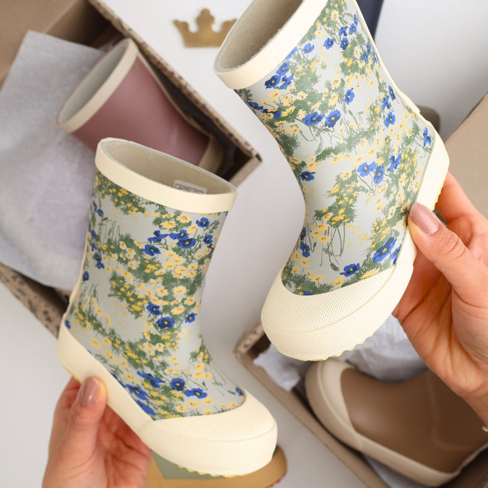 Låt ditt barn uppleva regniga dagar med glädje i dessa stilrena och hållbara Wheat Meadow Lake gummistövlar. Tillverkade i miljövänligt naturgummi och med ett foder av 100% återvunnet polyester, erbjuder dessa stövlar både komfort och stil. Stövlarna har ett högt skaft som skyddar mot vatten och smuts samt yttersulor som är designade för att skydda tårna ytterligare. Det lekfulla signaturtrycket och en reflexlogotyp på baksidan ger en snygg touch samtidigt som det ökar synligheten.