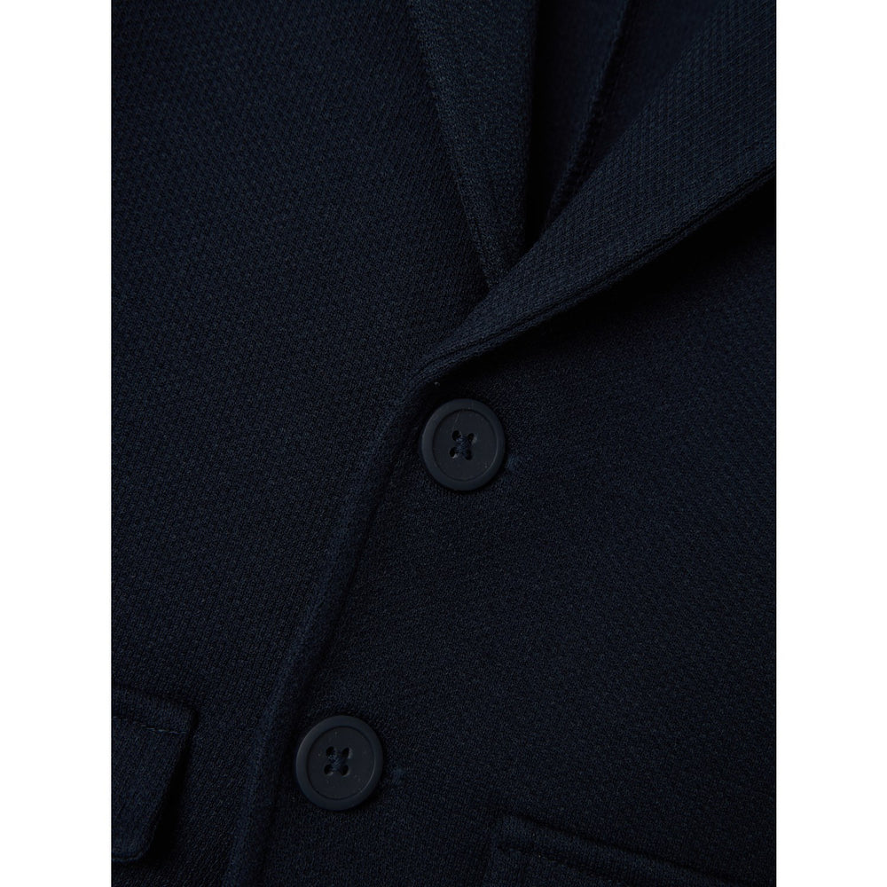 Blazern kommer i en djup mörkblå nyans, vilken ger ett sofistikerat och tidlöst utseende. Den är designad med en klassisk sprid krage och stängs smidigt med knappar framtill. Även de icke-funktionella framfickorna lägger till en elegant touch utan att vara överväldigande.