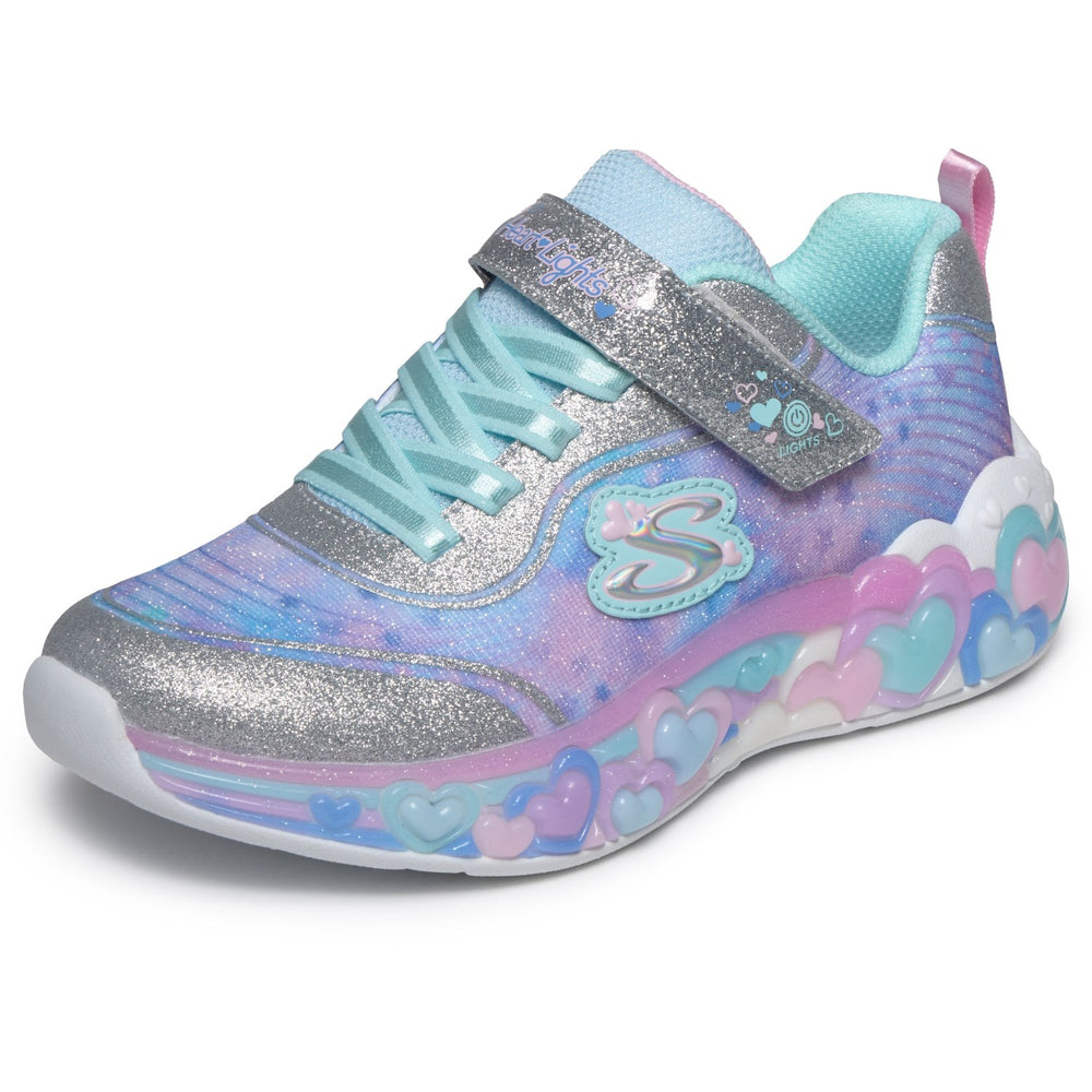 Förvandla vardagsäventyren för de små med Skechers Silver S-Lights: Eternal Heart Lights sneakers. Dessa trendiga skor kombinerar funktionalitet med spännande design, perfekta för energiska barn. Tillverkade av skimrande mesh och syntetiskt glittermaterial, erbjuder dessa sneakers både hållbarhet och iögonfallande stil. Färgglada och med en lekfull, lysande hjärtdesign på mellansulan som inte bara ser cool ut men även ökar säkerheten genom att förbättra synligheten.