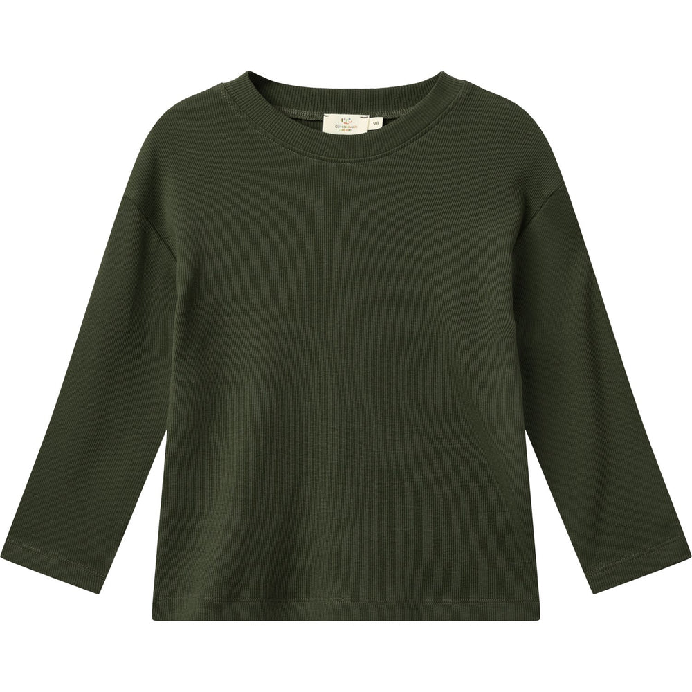 COPENHAGEN COLORS Dk Green Modal Rib Ls Blus W. Drop Shoulder