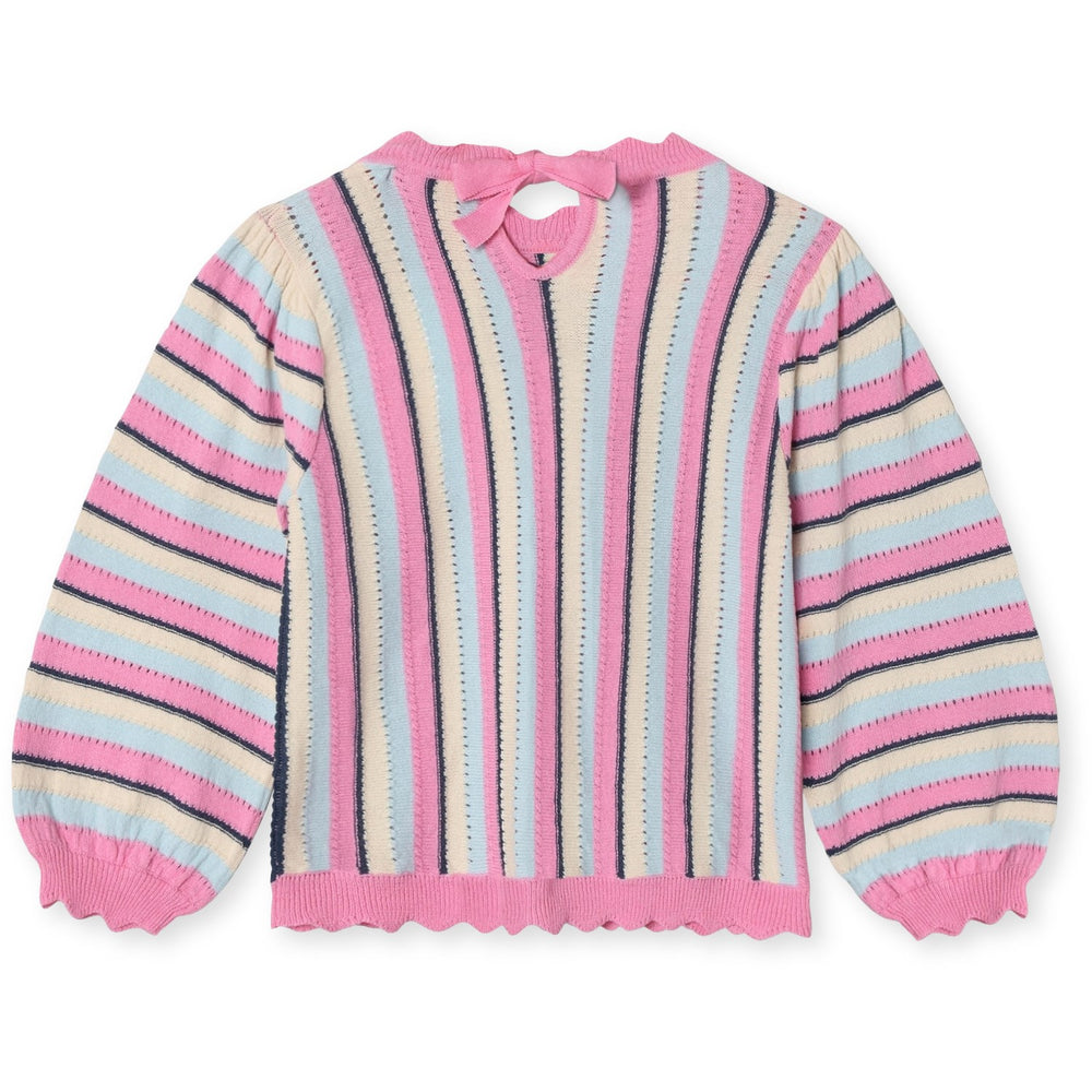 Kliv in i lekfull charm med den här mysiga, stickade långärmade blusen, designad för både komfort och stil. Den är tillverkad av 100 % mjuk bomull och har livfulla flerfärgade ränder som fångar ögat. Blusen erbjuder charmiga detaljer som ribbade kanter accentuerade med delikata rosetter och voluminösa ärmar för en touch av nyckfullhet. En praktisk knytning baktill säkerställer en åtsittande passform, vilket gör den perfekt för heldagsäventyr. Det är enkelt att tvätta och ta hand om det här plagget, vilket gör att det håller sig fräscht och fantastiskt dag efter dag.