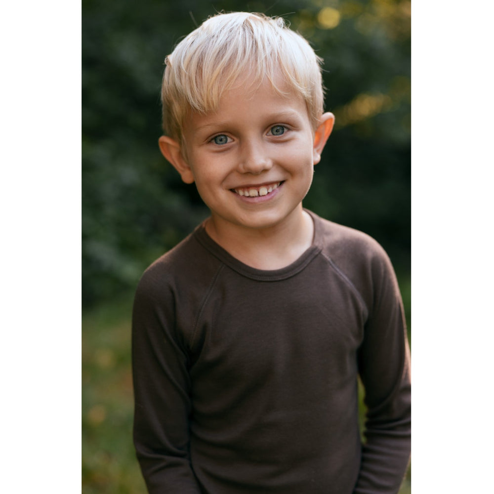 Upplev komfort och stil med vår nya långärmade t-shirt från MarMar! Den enfärgade designen i djupt chokladbrun och smidiga raglanärmar gör denna blus perfekt för alla tillfällen. T-shirten är tillverkad av mjuka material som är skonsamma mot barnets hud och erbjuder en bekväm passform. Idealisk för lek och avkoppling, den här t-shirten blir snabbt en favorit i barnets garderob. Lätt att sköta om, den håller sig snygg tvätt efter tvätt. Material: 48% Viloft 48% Polyester (Återvunnen) 4% Elastan Tvättråd: Tvätt - Maskintvätt 40°C , Blekmedel - Får ej blekas, Torkning - Torktumla ej, Strykjärn - medium, Kemtvätt - Kemtvätt möjlig Certifieringar: OEKOTEX standard 100, SMETA Mjukt och skönt underställ Skonsam mot huden Bra alternativ till ull Svettabsorberande och fukttransporterande God andningsförmåga och isolering Mjuk, flexibel och slitstark Lämplig som skidunderställ och innerlager
