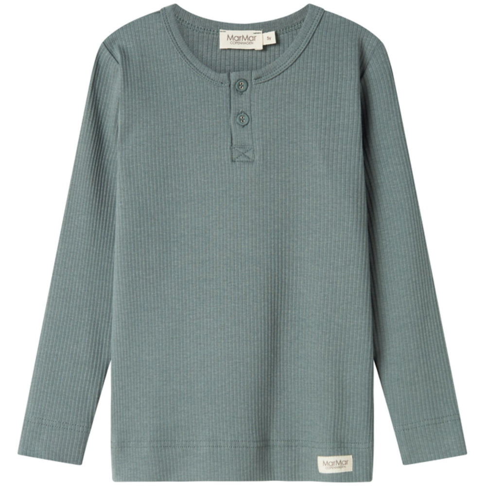 Denna charmiga långärmade t-shirt från MarMar i lugnande dusty green är perfekt för ditt barns vardagsgarderob. Tillverkad i mjuk modal, kombinerar den både komfort med stil tack vare de diskret designade knapparna. T-shirten erbjuder en avslappnad passform som gör den idealisk för lek och rörelse, samt är enkel att sköta vilket gör den till en praktisk del av varje barns klädkollektion. Material: 47% Modal 48% Bomull (Ekologisk) 5% Elastan Tvättråd: Tvätt - Maskintvätt 40°C , Blekmedel - Får ej blekas, Torkning - Torktumla ej, Strykjärn - medium, Kemtvätt - Kemtvätt möjlig Certifieringar: OEKOTEX standard 100, GOTS , Lenzing, SMETA Ribbstickad med elastan Mjuk, stretchig och skön att ha på sig Kvalitet som håller form och färg Bär den med allt Oeko-tex® - Testad för skadliga kemikalier Modala stilar har varit en favorit sedan 2008 och lanseras i nya färger varje säsong