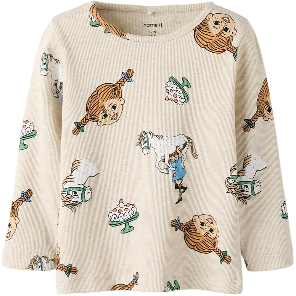 Med en klassisk rund halsringning och en normal passform främjar den rörelsefrihet och är enkel att kombinera med diverse andra plagg. Tack vare det genomtänkta trycket som upprepas över hela ytan, introduceras även en dos av personlighet och charm. Denna topp är enkel att sköta om och bör förvaras åtskilt från eld för att bibehålla sitt utmärkta skick. En mångsidig och stilfull del av barnets vardag, Name It toppen är ett måste för de unga som vill se bra ut och känna sig bekväma. Passform: Ordinarie Material: 95% Bomull, 5% Elastan Material och skötsel: Tvättas med liknande färger. Tvätta med avigsidan utåt Tvättråd: Maximal tvättemperatur 40°C - Normal process
