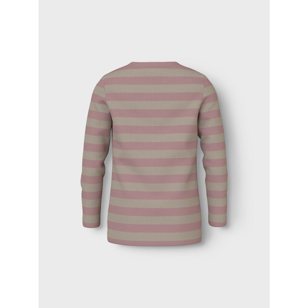 Designen kännetecknas av ett iögonfallande vertikalt randigt mönster som tillför en lekfull och trendig touch. De långa ärmarna ger extra skydd under svalare dagar, medan ribbstickningen säkerställer en flexibel och anpassningsbar fit. Buksens attraktiva 'woodrose'-färg och tidlösa stil gör den till ett utmärkt val för både vardagsbruk och festligare tillfällen.